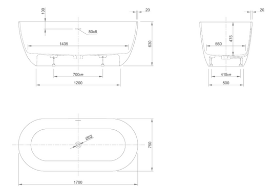 GLAM 150/170 BATH TUB | PIETRA CASA BRAND | $18,379.27 - 19,778.12
