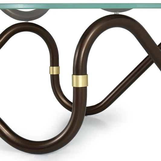 FLOW SINUSODIAL OVAL COFFEE TABLE WITH EXTRA CLEAR GLASS TOP | $4,725.00