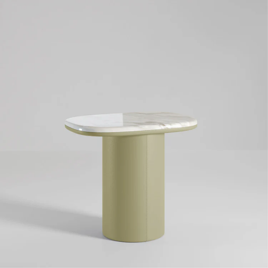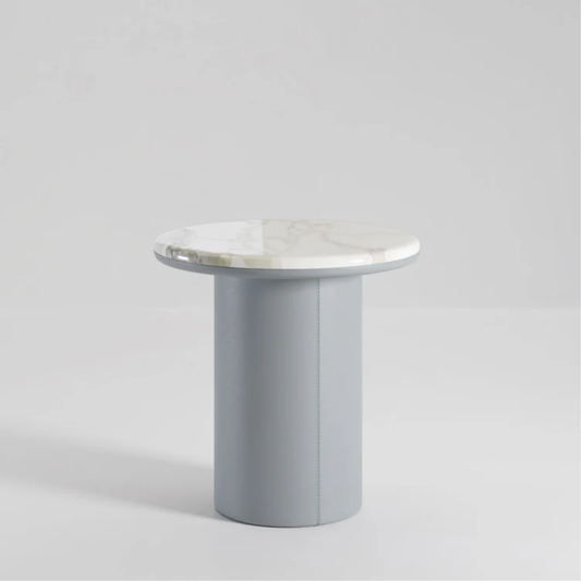 SECOLO | GEMINI LEATHER AND CALACATTA MARBLE SIDE TABLE | $6,785