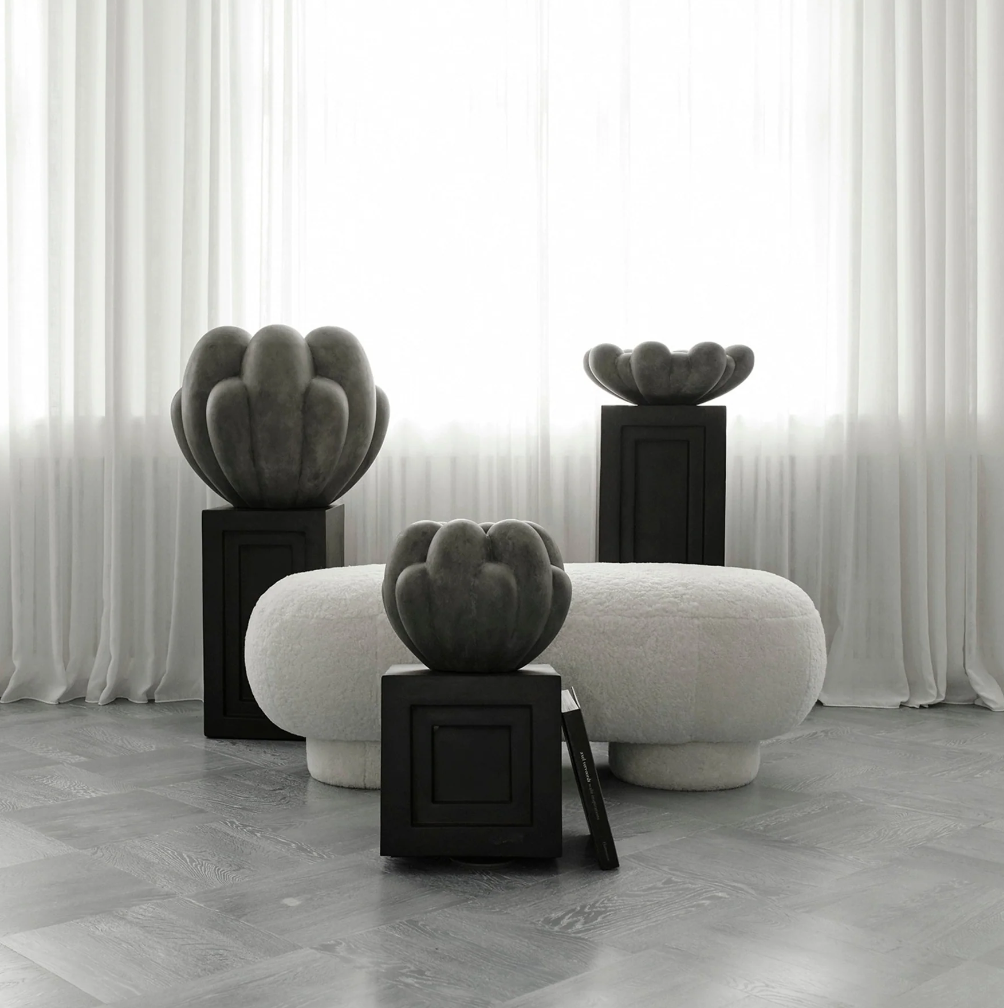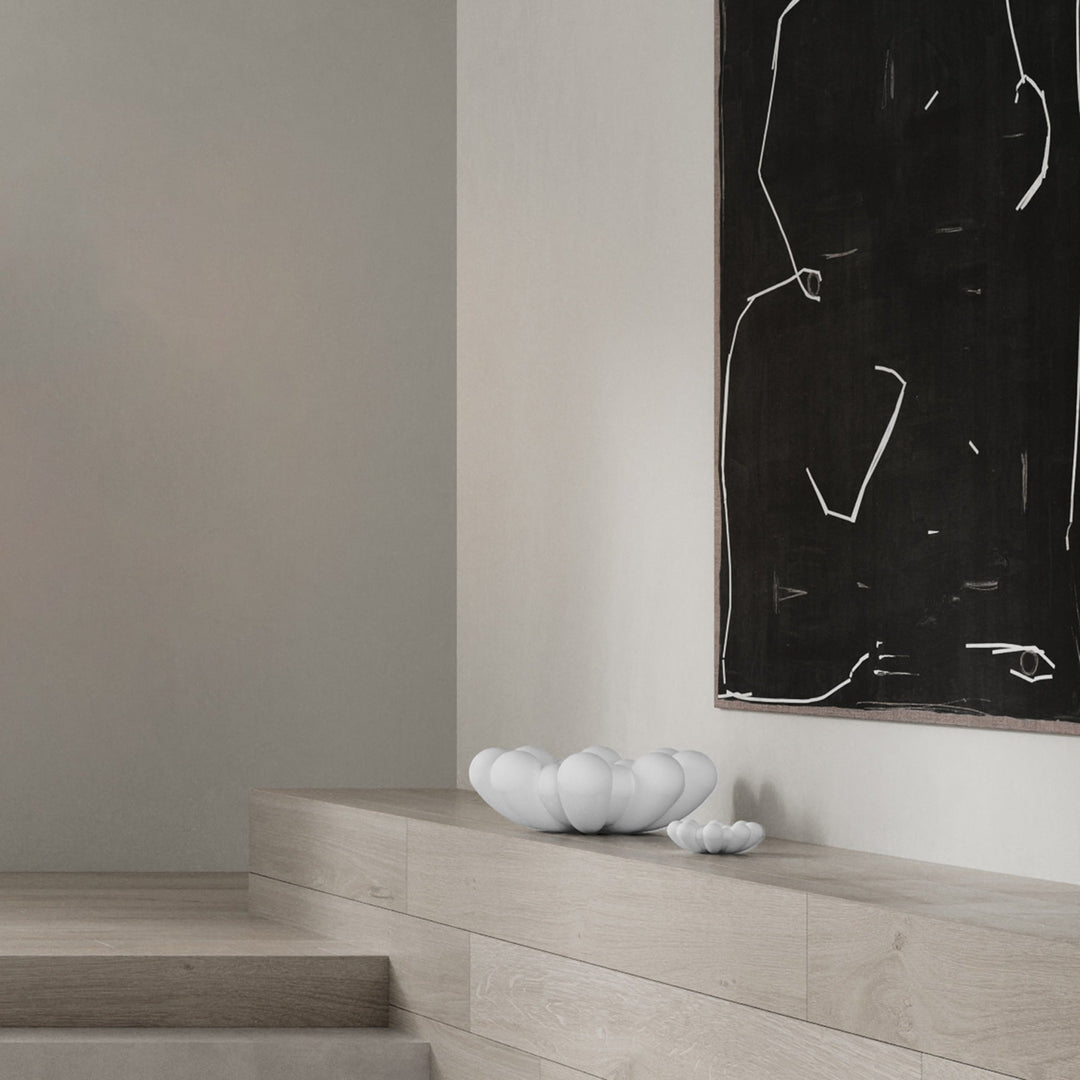 Bloom is an interpretation of 70s floral inspired design. But with a more raw and clean expression. The smoothly curved surface is contrasted by a strong underlying geometry and is enriched by a beautiful play of shadows around the depths of the surface. Due to its expressive design, the Bloom vases changes experience throughout the day, according to the position of light and shadows.