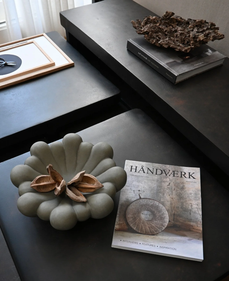 Bloom comes in both vases and trays and is made from ceramic and fiber concrete. The surface is hand glazed in order to achieve the unique surface texture. The colours may vary slightly, due to that it is a handmade product.