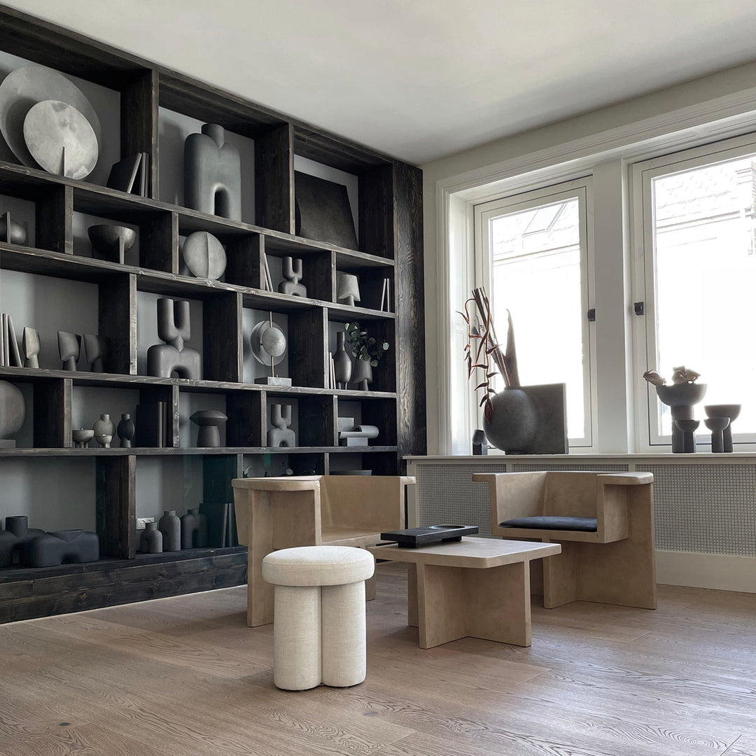 Inspired by the Brutalist architecture movement of the mid-20th century, the Brutus collection comprises a dining chair, a lounge chair, a stool and a coffee table cast in lightweight fiber concrete creating a unique surface texture increasing mobility. Each piece is hand painted to create a textured, unique surface. Emphasizing the fine balance between sharp architectural lines and a somewhat softer curve in the back and armrest, the Brutus collection is sculptural statement pieces with a compelling seating comfort.