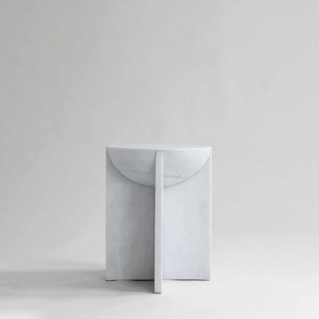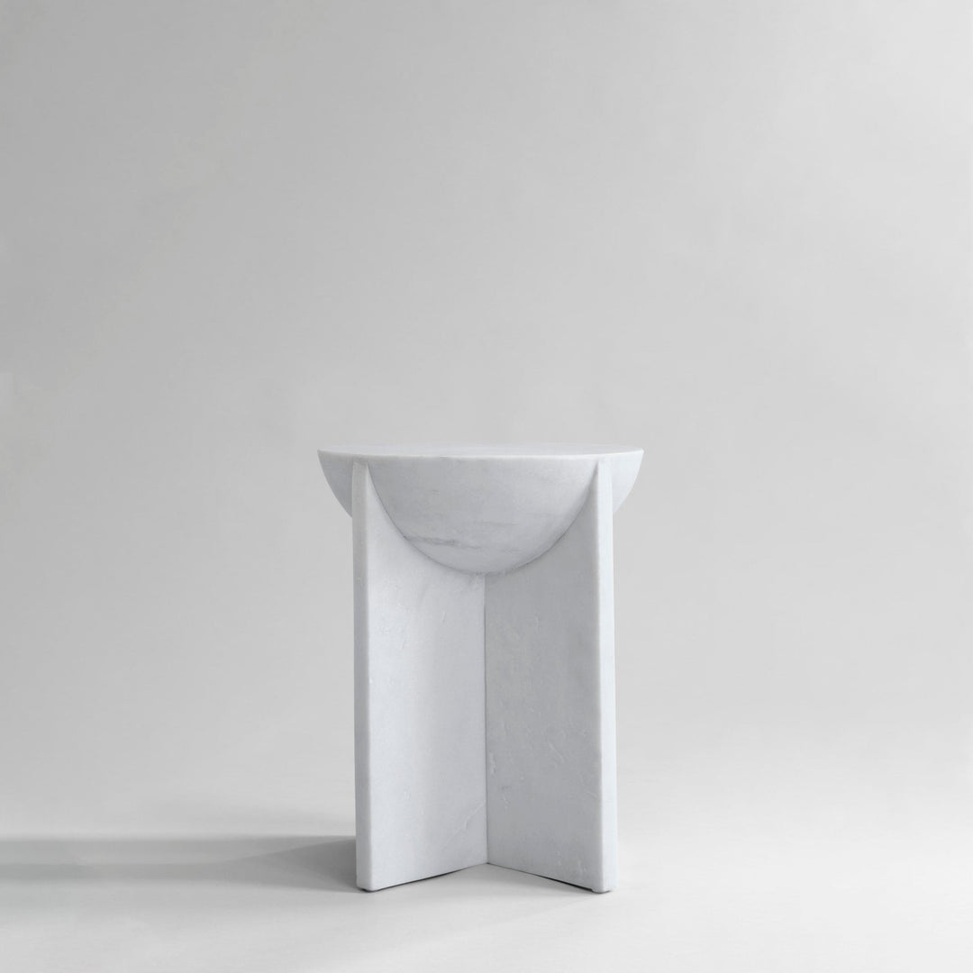 With its geometric shapes and sharp lines, Cross is inspired by the architectural minimalism, with the attempt to create a simple and yet sculptural table of solid marble. The side table is developed in close collaboration with Indian marble suppliers in the search for the perfect homogeneous stone. Each solid marble table consequently reveals deliberate small contrasts in the texture, a surface of gorgeous, faded earth tones and a matte finish. Cross can be used as both a side table and a stool.