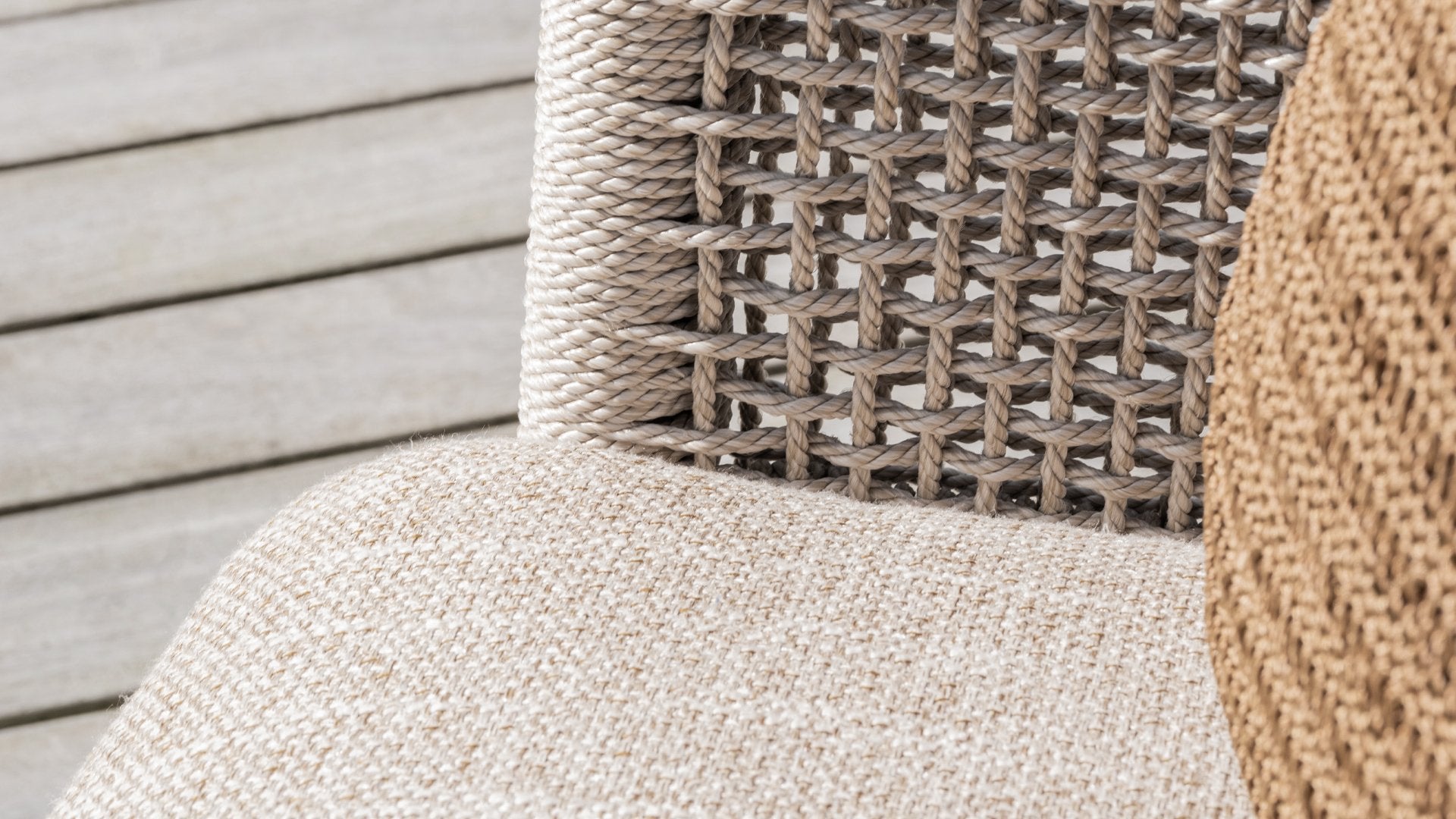Sleek design, perfect quality. The 4 Seasons Outdoor Savanne lounge features a beautiful rope pattern all around, handmade by the most skilled weavers. Thanks to the weather-resistant materials and cushions, you can enjoy Savanne all year round. The powder-coated aluminum frame in Terre, combined with the light gray rope, gives the lounge a stylish look. The Savanne features thick, comfortable cushions upholstered in Olefin and the luxurious "Hikaron Luxury" fabric.