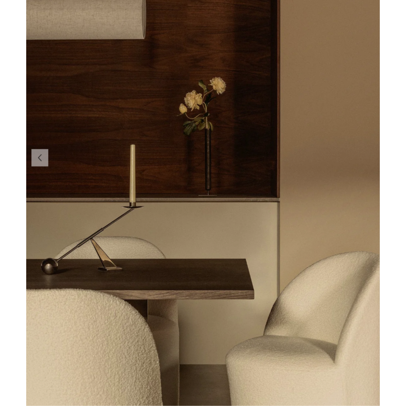Rooted in a unique design philosophy, Interconnect demonstrates designer Colin King’s and Audo’s commitment to innovation and creativity, pushing the boundaries of conventional candle holder design. Visually calming yet unexpectedly playful thanks to its geometric form that balances contrasting shapes, the design is both a source of cozy candlelight and a streamlined sculpture in its own right. In bronzed brass, black powder-coated metal or polished steel, it takes on a range of expressions, becoming only more beautiful with time and use. The candle holder is also available in a larger size.