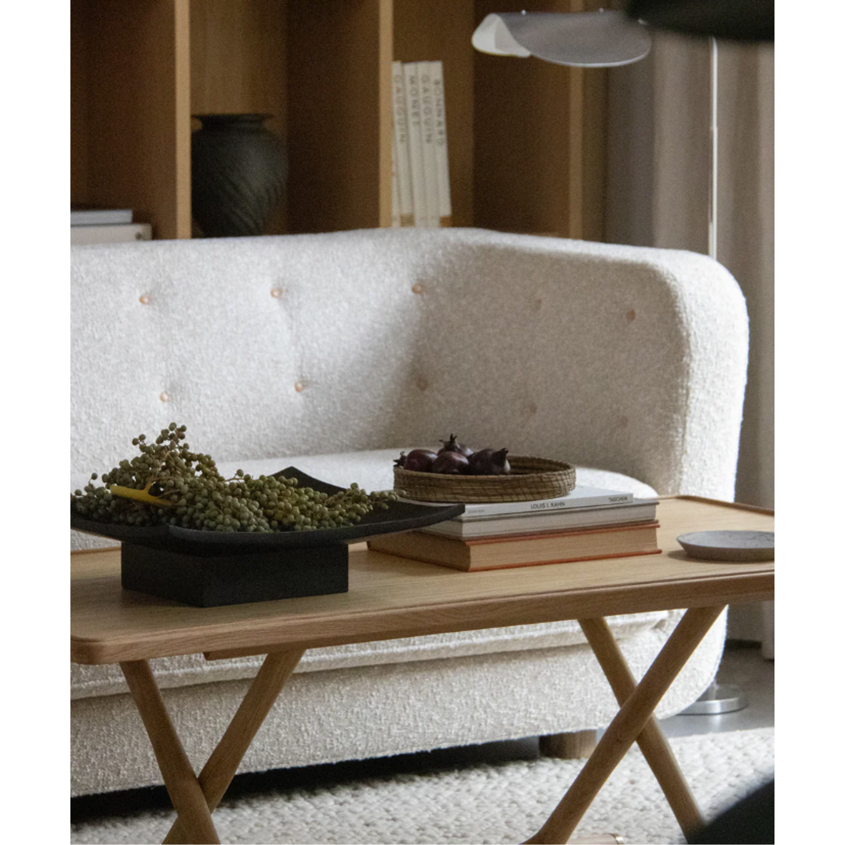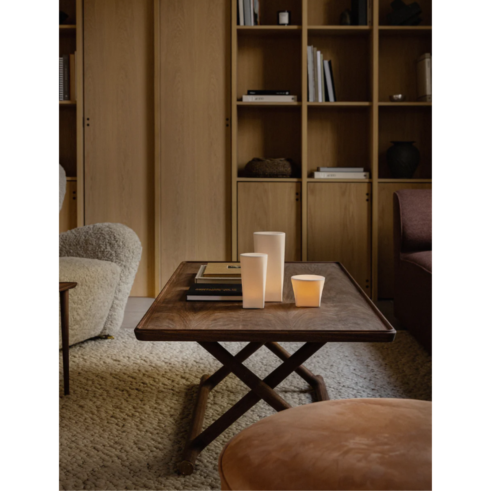 An archival design from 1941, Mogens Lassen’s foldable Jäger Lounge Table is reissued to a modern audience. Its name comes from the merchant for which it was created, and its design is inspired by the folding stools and beds found in Tutankhamen's Egyptian tomb. Shaped from wood – oiled oak or oiled walnut – brass fittings detail the iconic piece of Danish design. The table also features a brass plaque engraved with a unique serial number.