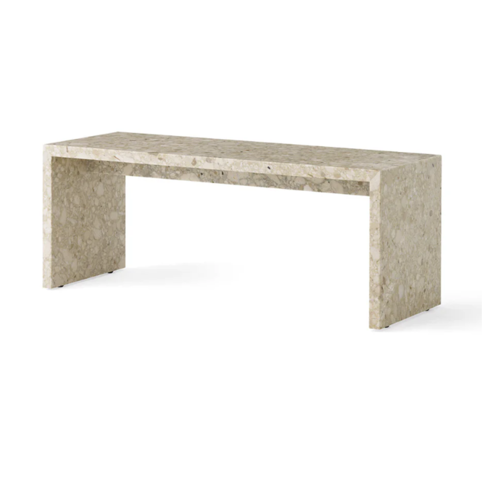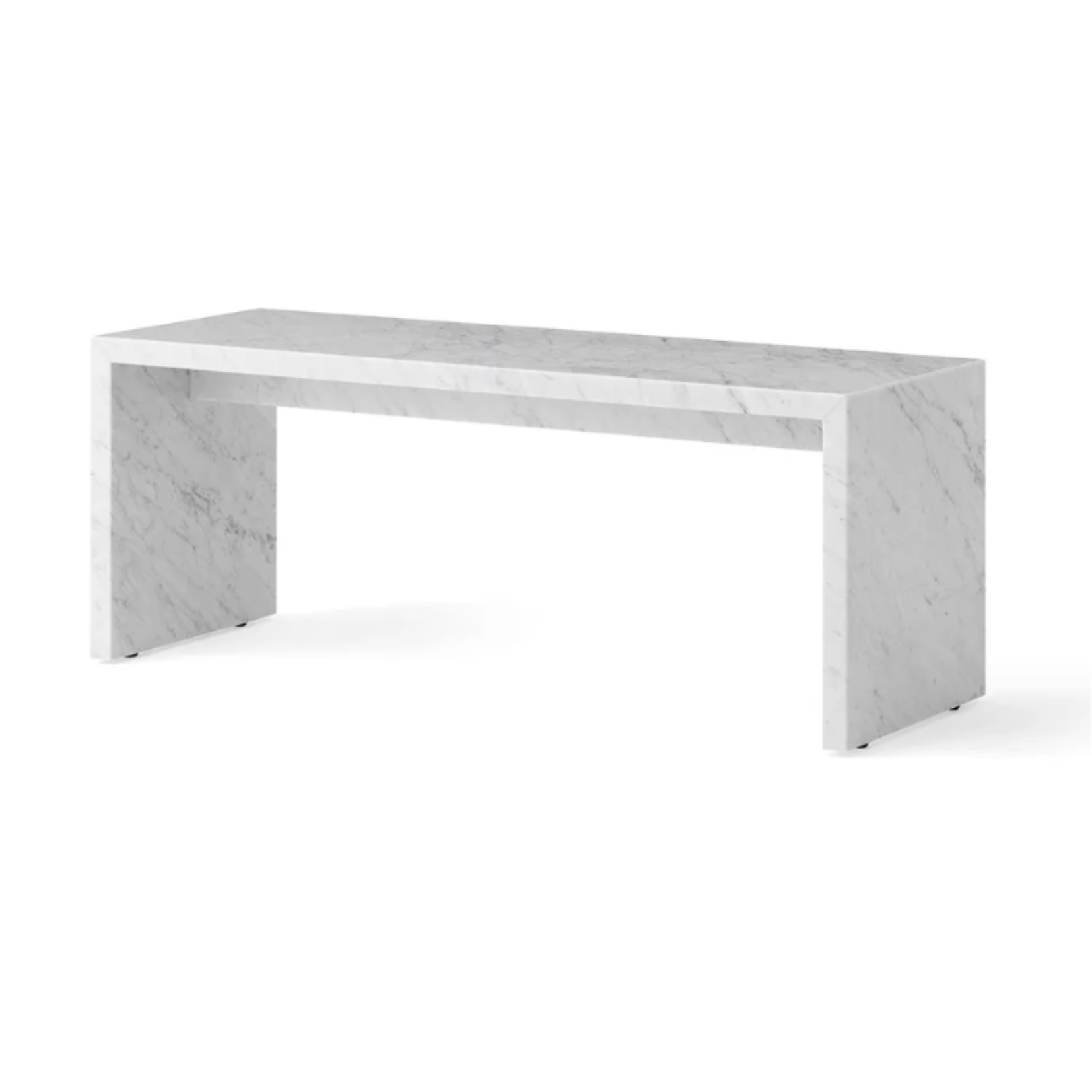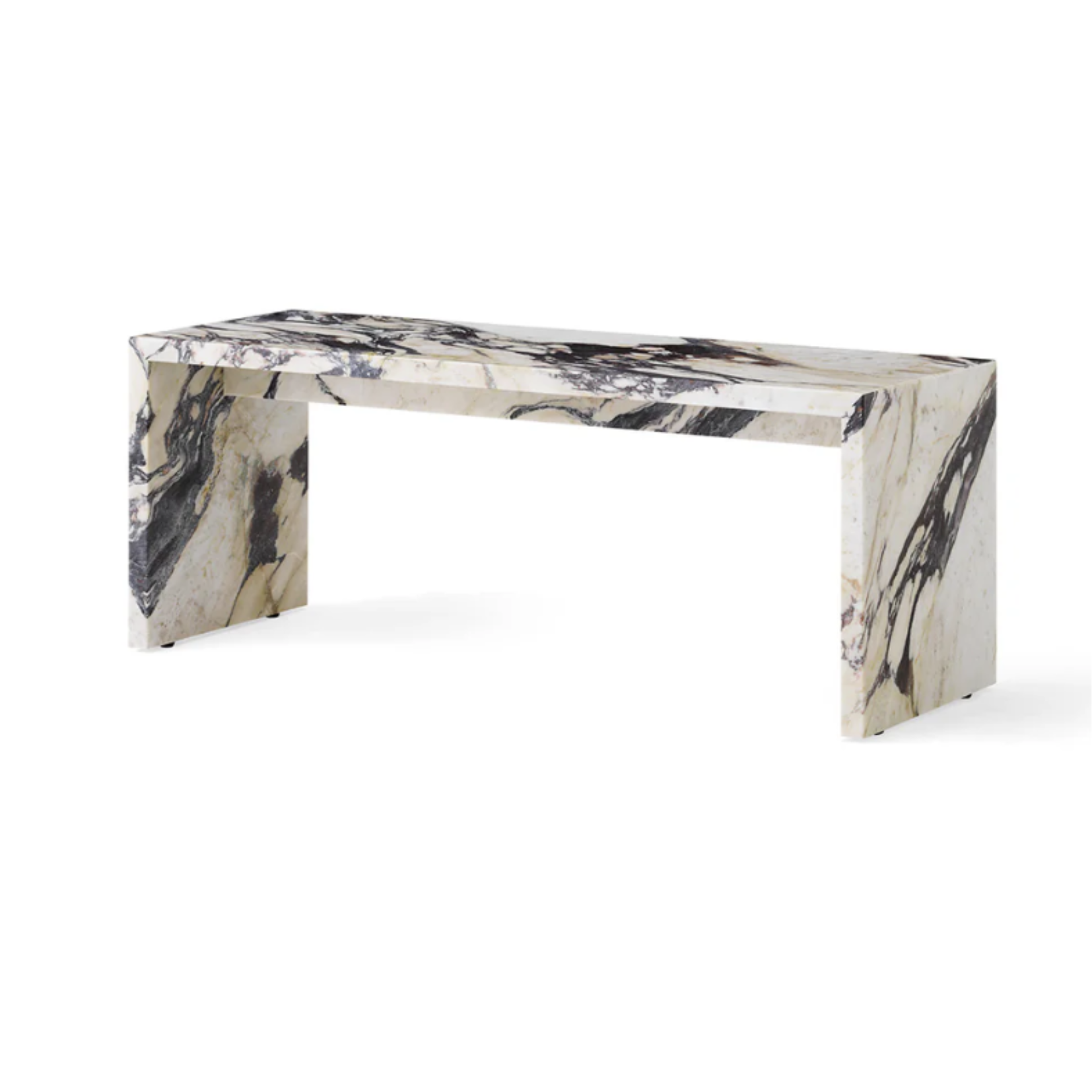 Plinth Bridge has a classic silhouette and modern material appeal. Designed for use independently as well as in combination with the Plinth Grand and Plinth Low podiums – forming a bridge across the low-slung designs for elevated surface space – the sleek design is offered in a range of beautiful, natural materials: from classic White Carrera marble and the intriguing purple-veined Calacatta Viola to sand-colored Kunis Breccia stone.