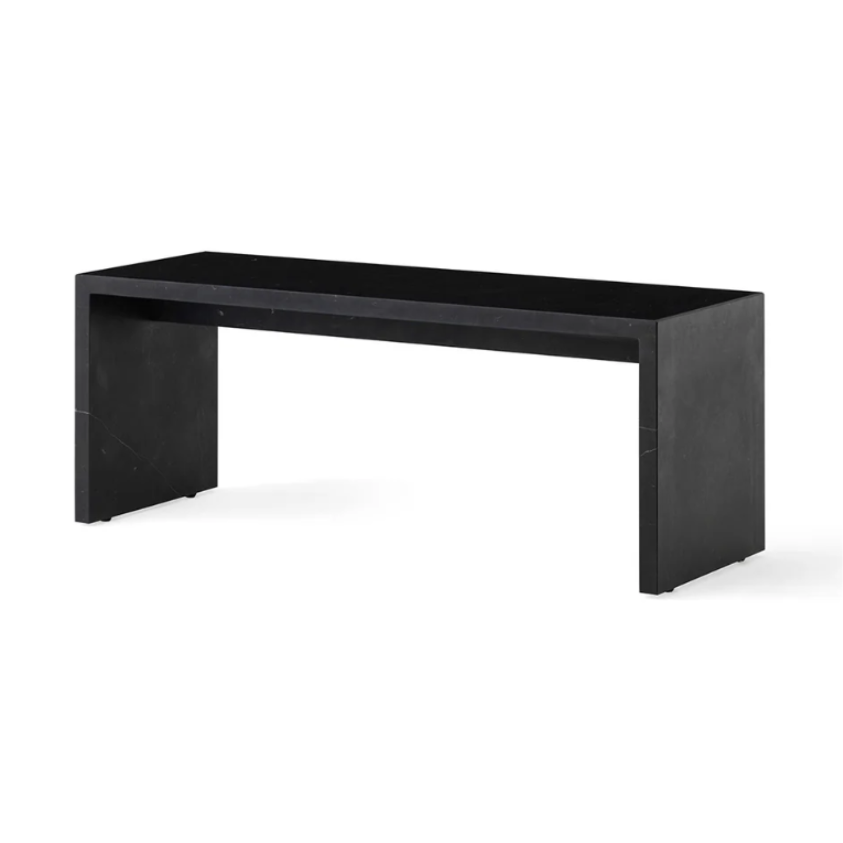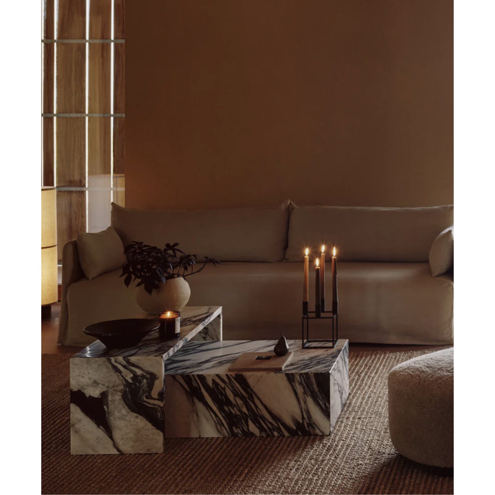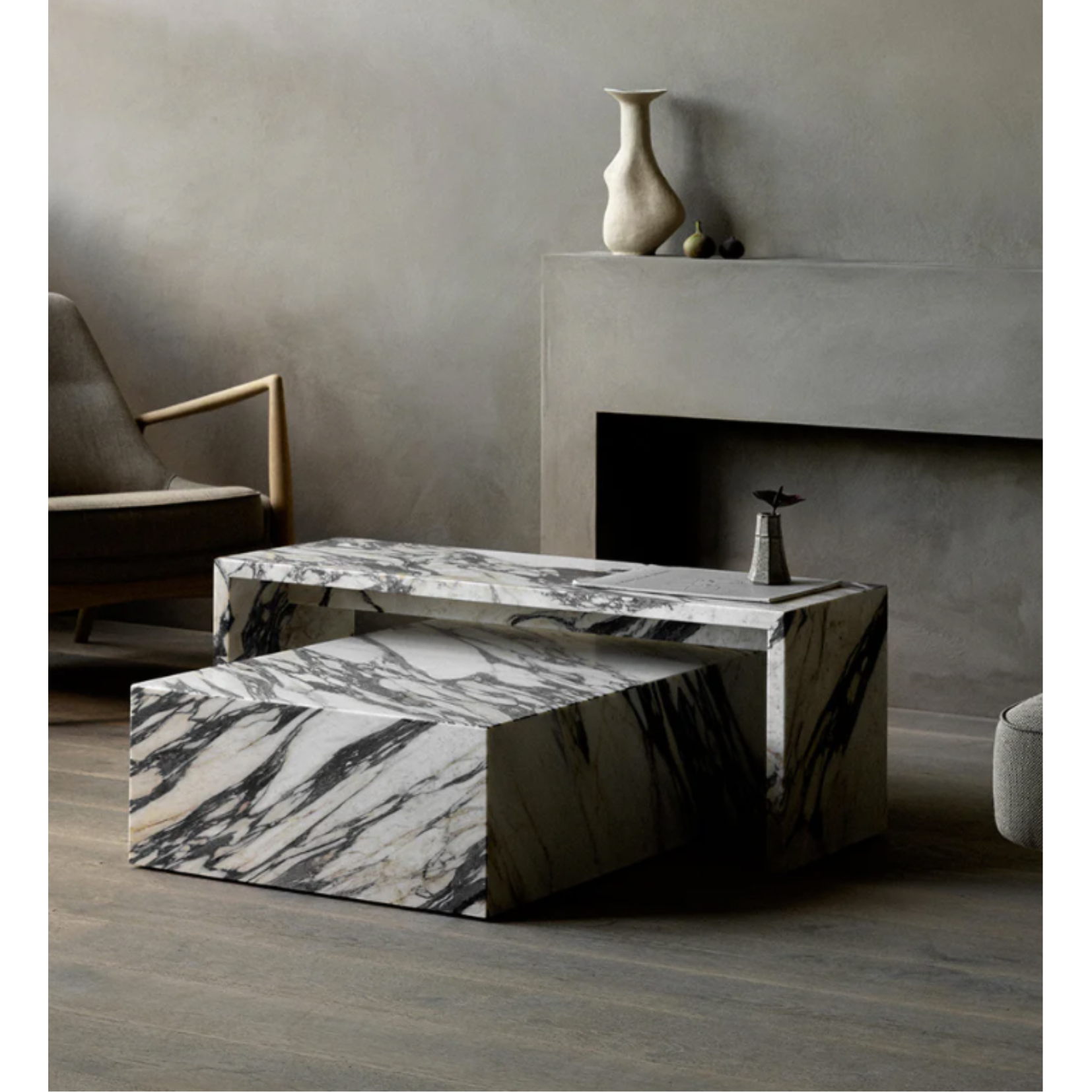 Plinth Bridge has a classic silhouette and modern material appeal. Designed for use independently as well as in combination with the Plinth Grand and Plinth Low podiums – forming a bridge across the low-slung designs for elevated surface space – the sleek design is offered in a range of beautiful, natural materials: from classic White Carrera marble and the intriguing purple-veined Calacatta Viola to sand-colored Kunis Breccia stone.