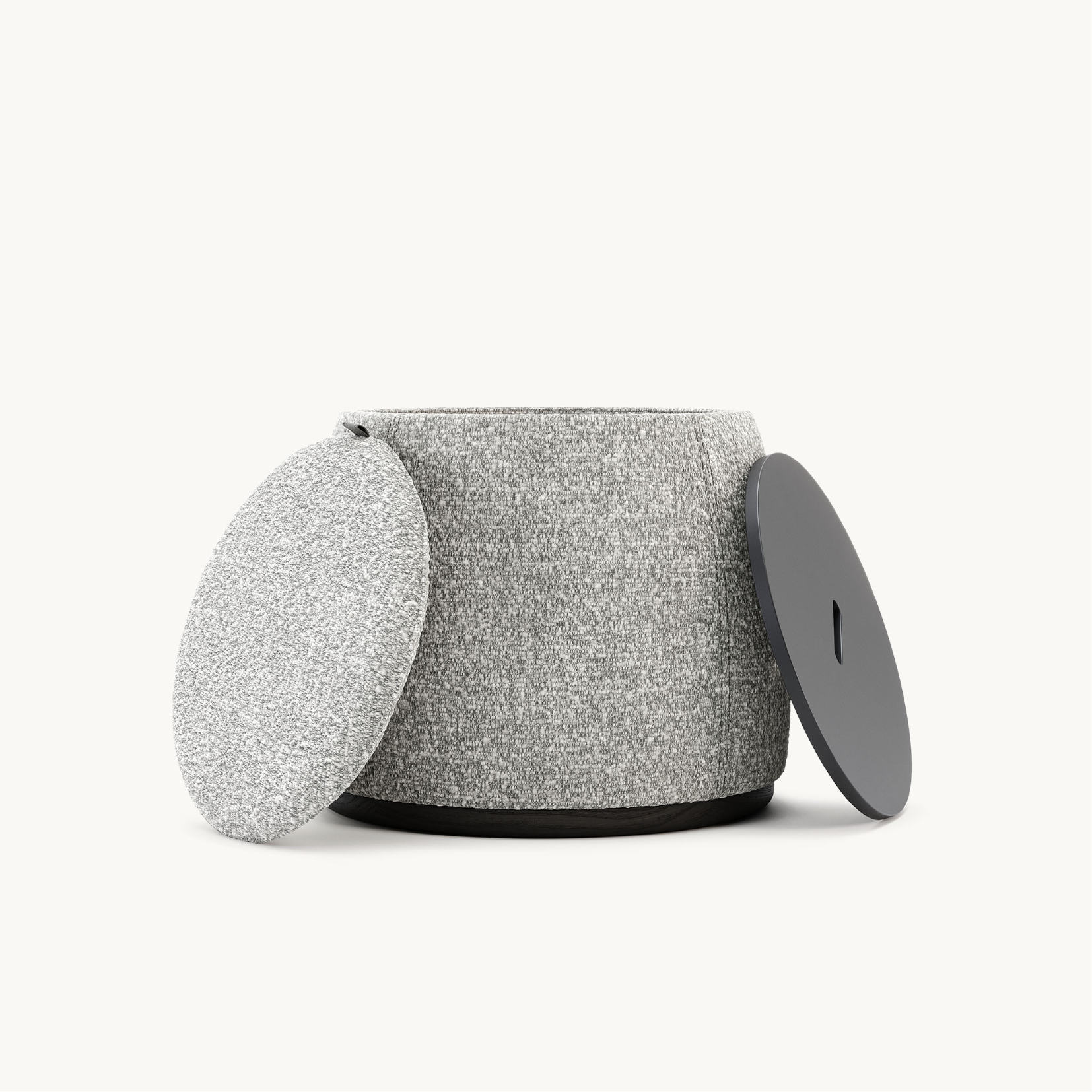 Designed with a warm, inviting aesthetic, the Avery pouf balances functionality with a refined look. Its gently inclined structure combines a lacquered top for use as a side table with hidden storage, making it both practical and stylish.