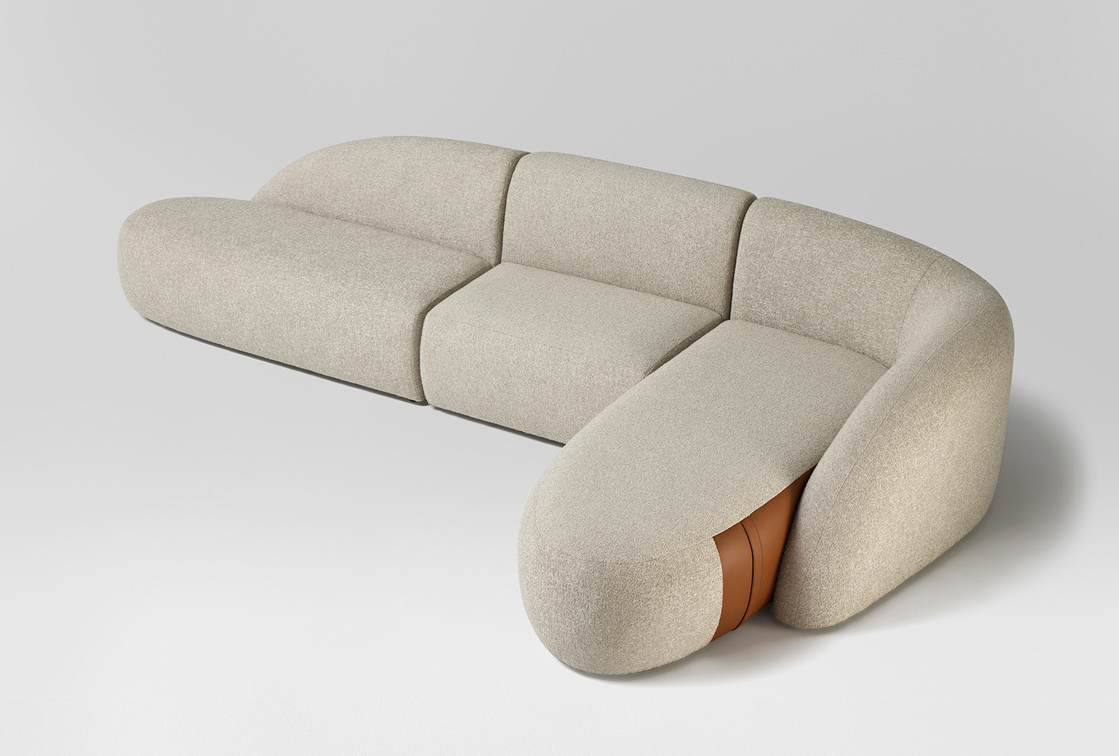 The Beluga Belt right-hand chaise longue sofa, designed by Jacobo Ventura, stands out for its contemporary and sophisticated design, inspired by the curved forms of the whale. This modular piece not only brings a touch of elegance to any setting but also offers unique versatility to adapt to various space configurations. Its smooth lines and leather detailing enhance its modern style, making it the ideal addition for those seeking both distinction and comfort in their home.