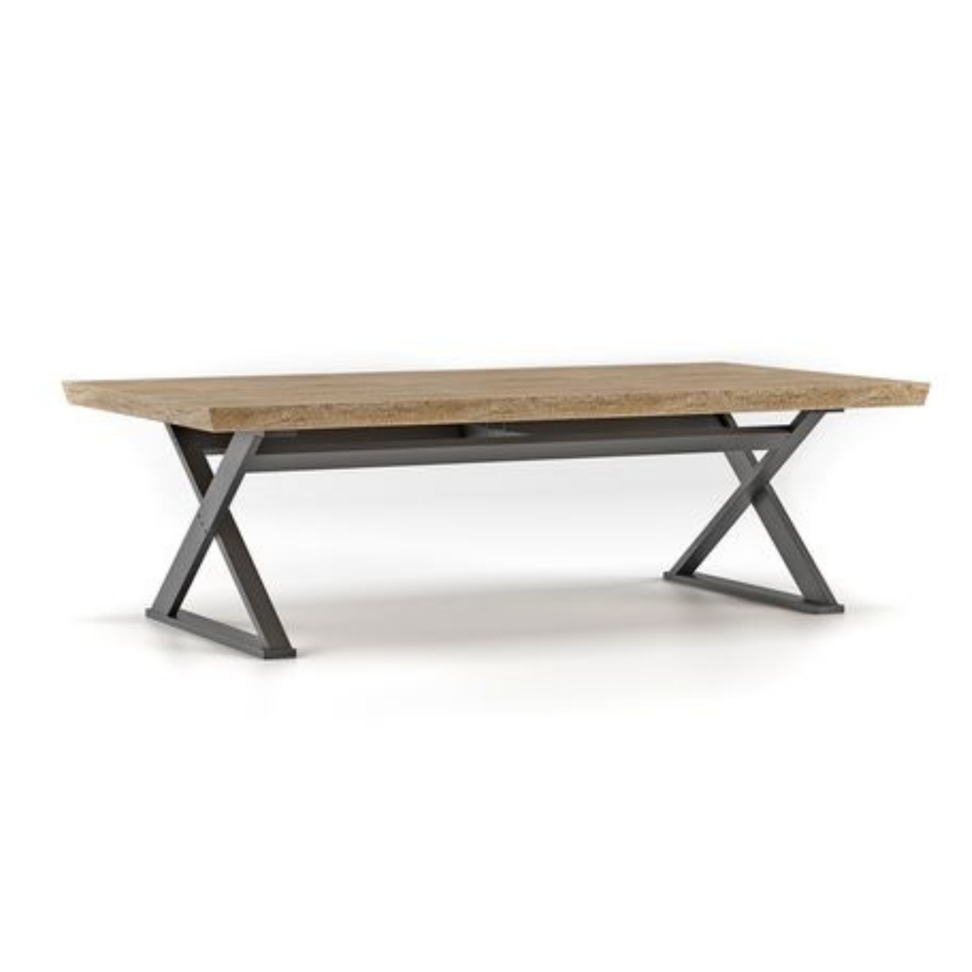Reminiscent of a picnic table with X-shaped legs, this gorgeous dining table will make an original statement in a contemporary or rustic-chic interior space. Resting on a gray-lacquered structure, it features a large rectangular wooden top. Please contact the Concierge for more information on materials, finishes, and available customizations.