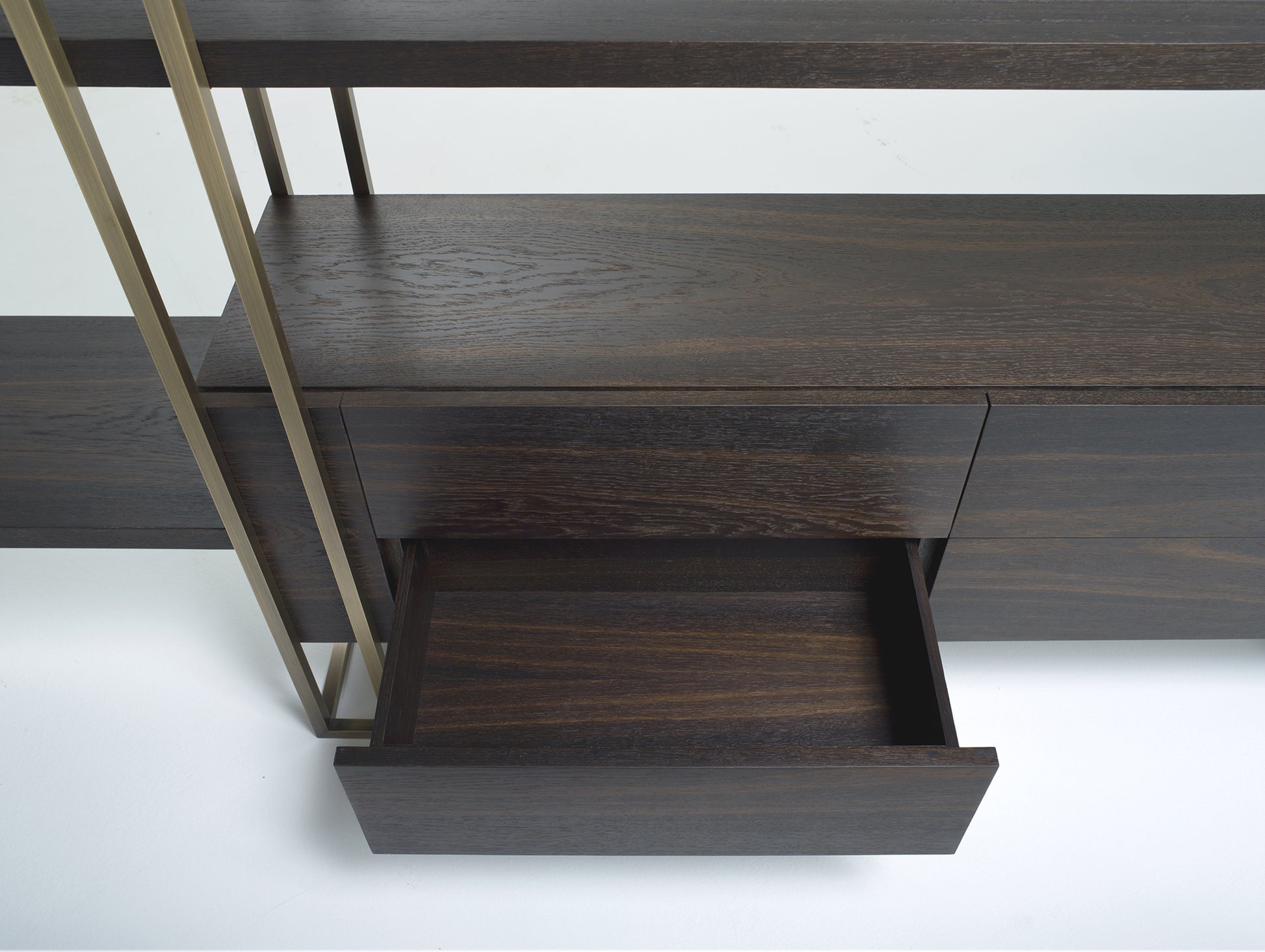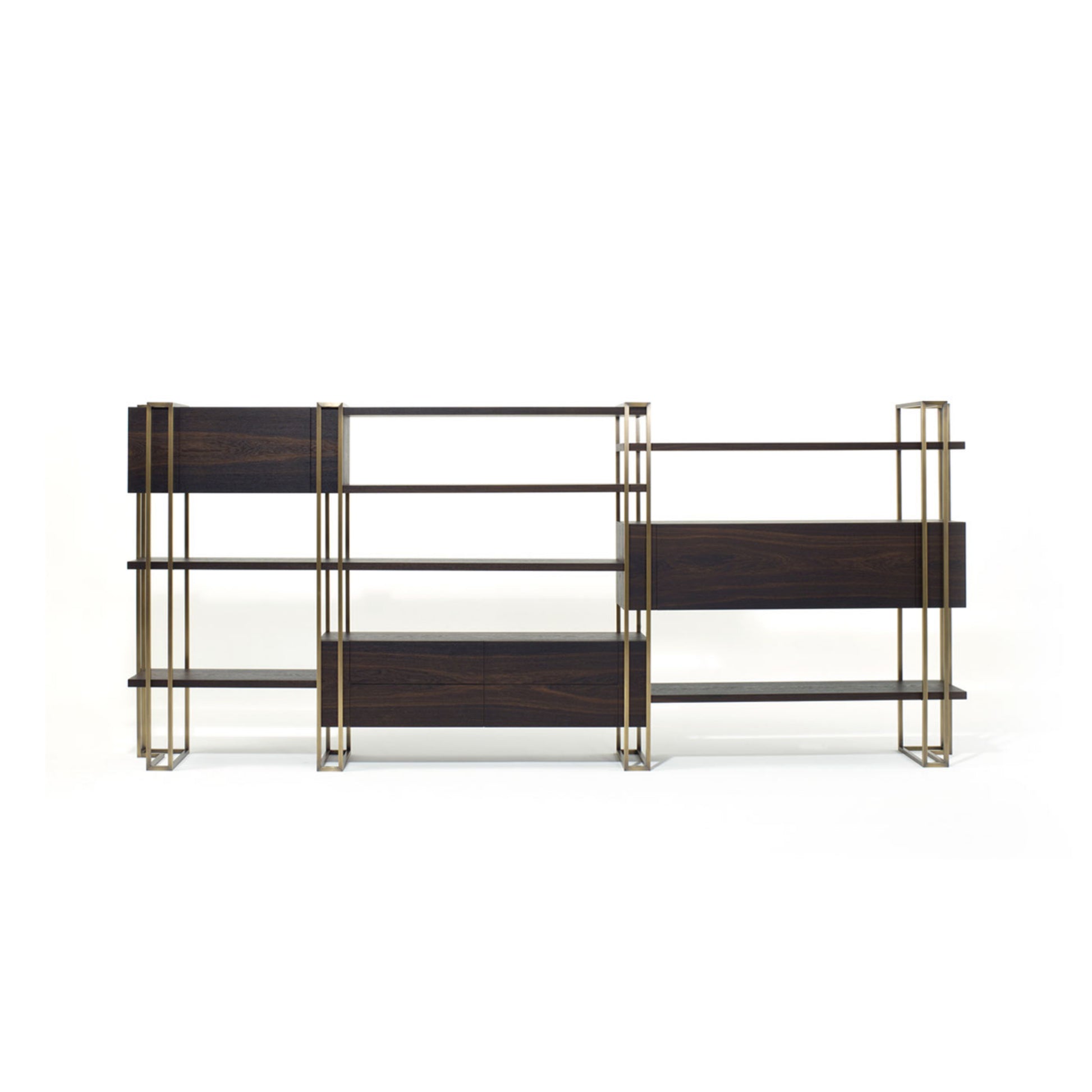 The Bookcage bookcase takes its name from the precious, almost ethereal structure that accommodates, proposes and arranges wooden shelves and containers, pleasantly organised in compositions that can be customised according to the customer's needs. A design tool, as well as a bookcase that flexibly furnishes space.