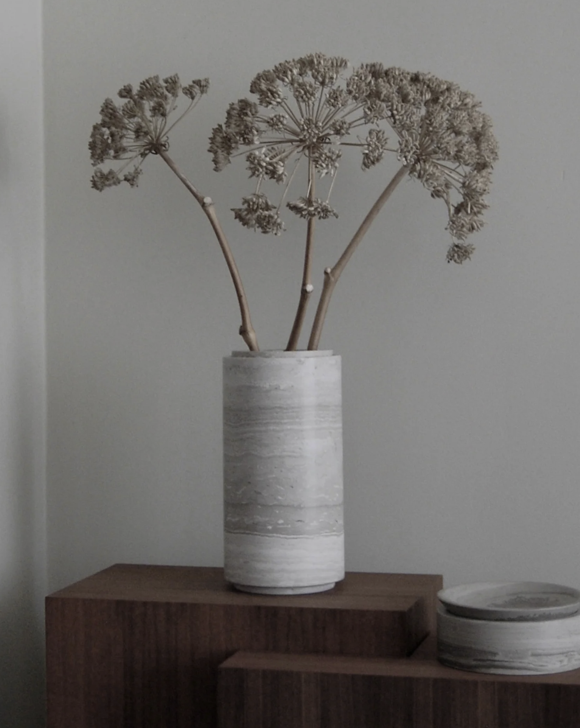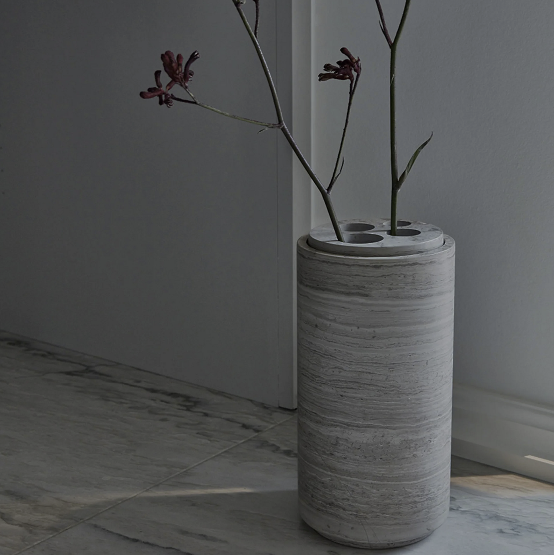 Beautiful marble vase and has an insert with four holes in the top, which is removable. The STEM vases are ideal for the current trend to showcase a few dried flowers.