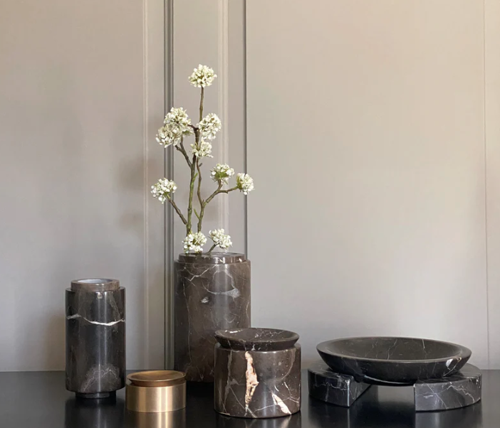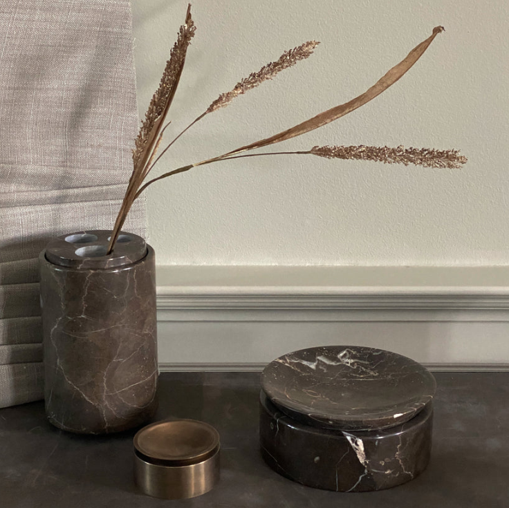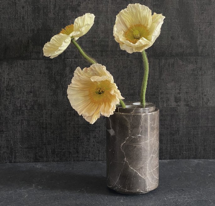 STEM vase small in the color Shadow Black is a beautiful marble vase and has an insert with one big hole in the top, which is removable. The STEM vases are ideal for the current trend to showcase a few dried flowers.