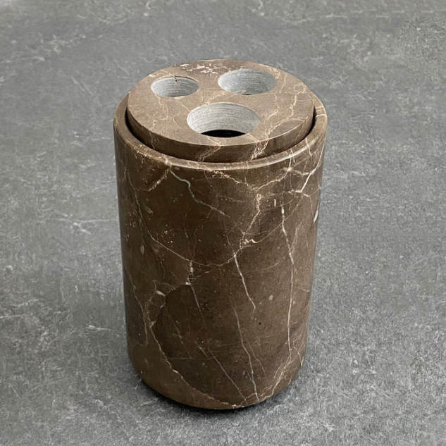The marble may absorb and transport water, especially the lighter marbles, therefore we suggest applying a sealer inside or use a canister/glass if you wish to fill with water. We suggest using a surface sealer suitable for natural stone. Because the marble is a natural stone, the color and structure can vary a little. The surface is not treated, we therefore recommend protecting the product from acidic food and cleaning agents.