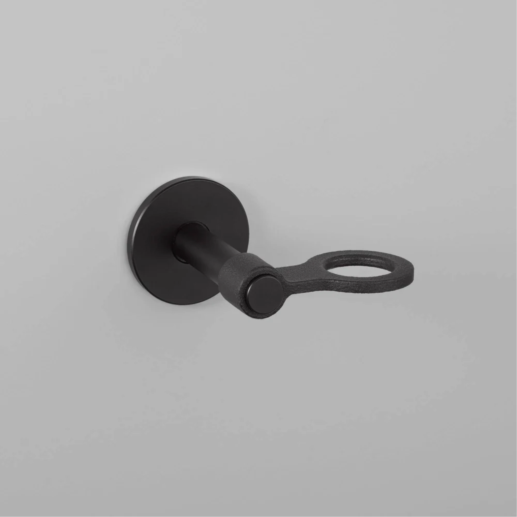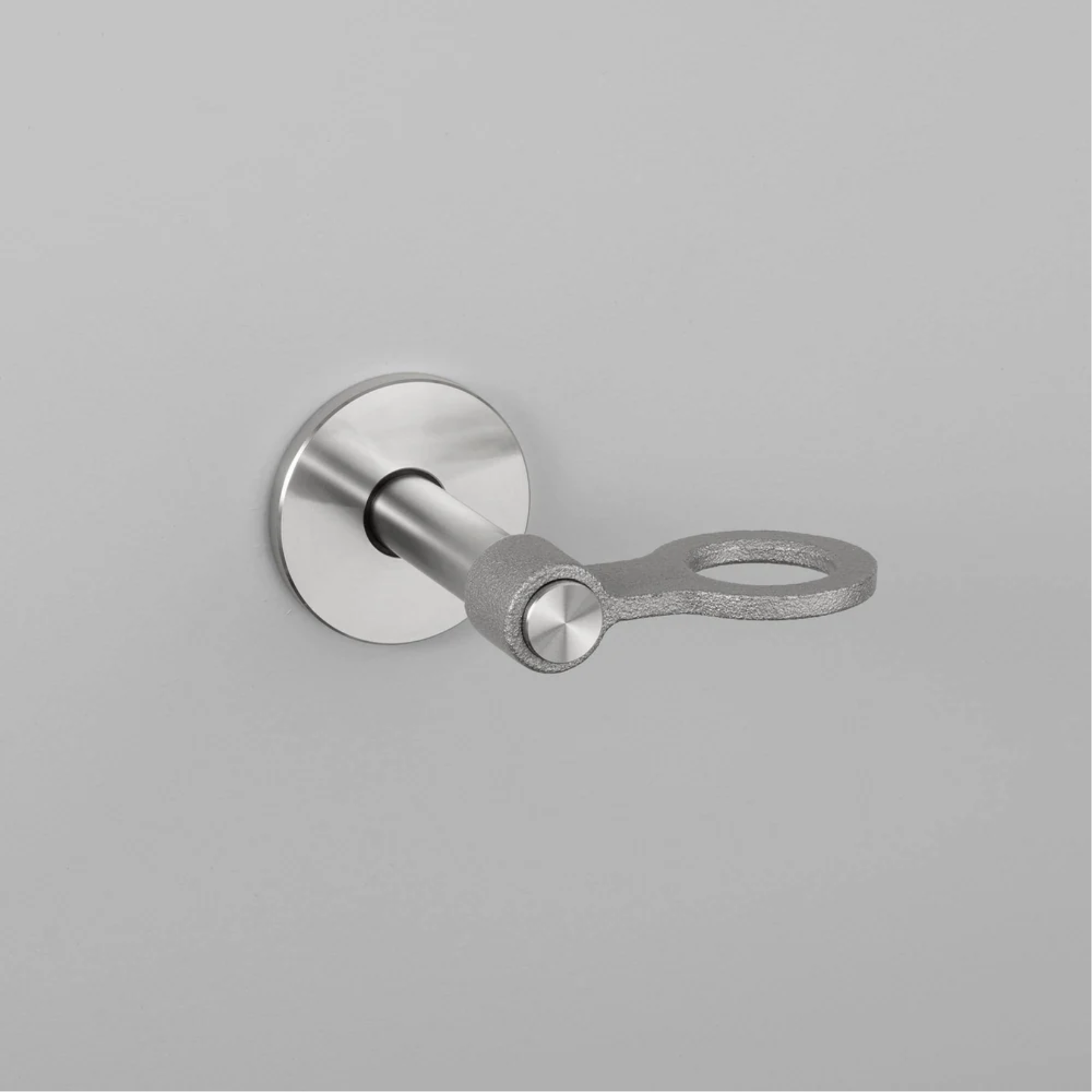 A single-sided soap holder featuring a rough-cast bracket and solid metal bar, with a solid metal disc. All refined by hand.