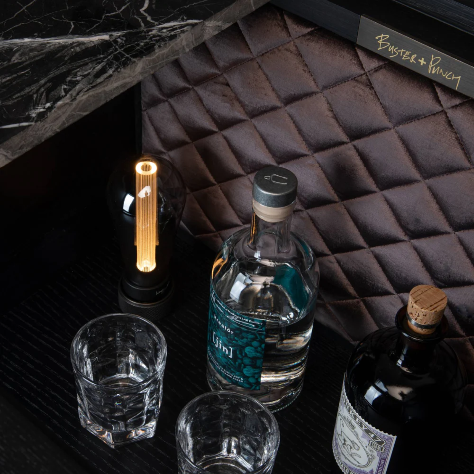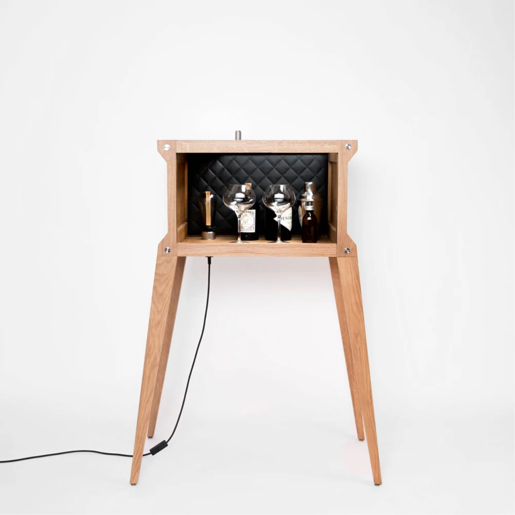 Handmade, bespoke bars made from black or natural solid oak. Our bars are designed to be the star of every room and are finished with our signature coin screws, knurled furniture handles and a diamond-etched logo plate. The bars are designed to complement our furniture and home accessories ranges.