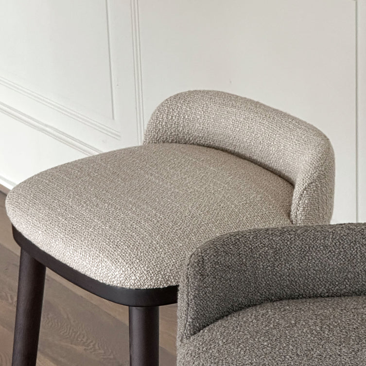 The chair can be customized, and you can choose between two different wood colors for the legs as well as two different fabric types in a multitude of different muted colours. In addition, the CAINE barstool also comes in a version with a leather-upholstered seat and back.