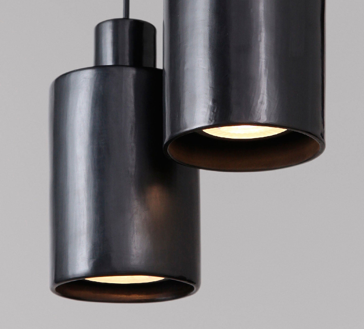 Can pendant lamp in a more protagonist size, celebrating its original personality. The tubular shape maintains its flawless edged terrace and plays with a size to create another version of the classic silhouette. Barro negro is a special clay from Oaxaca characterized by its black color that comes from the smoke during the firing process.