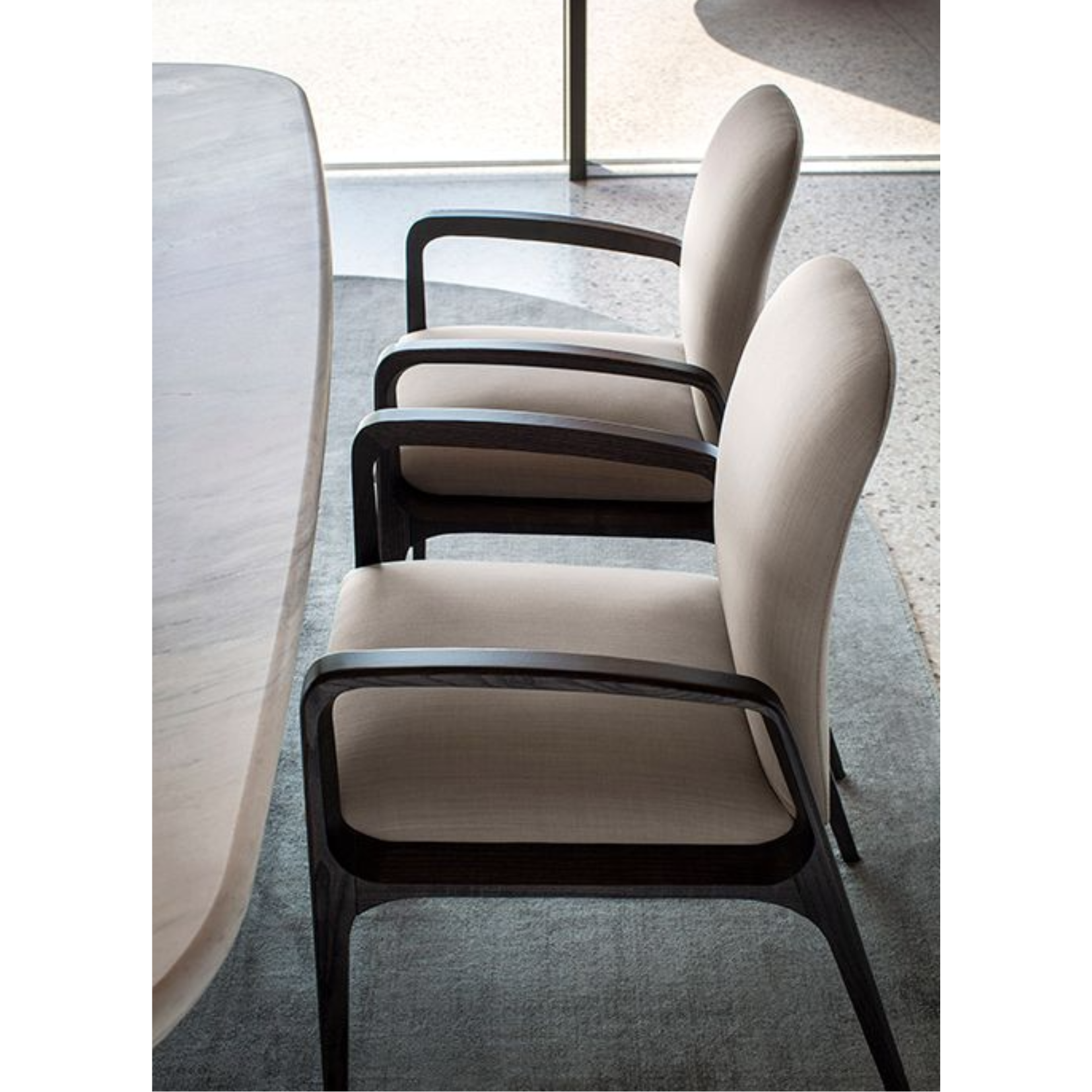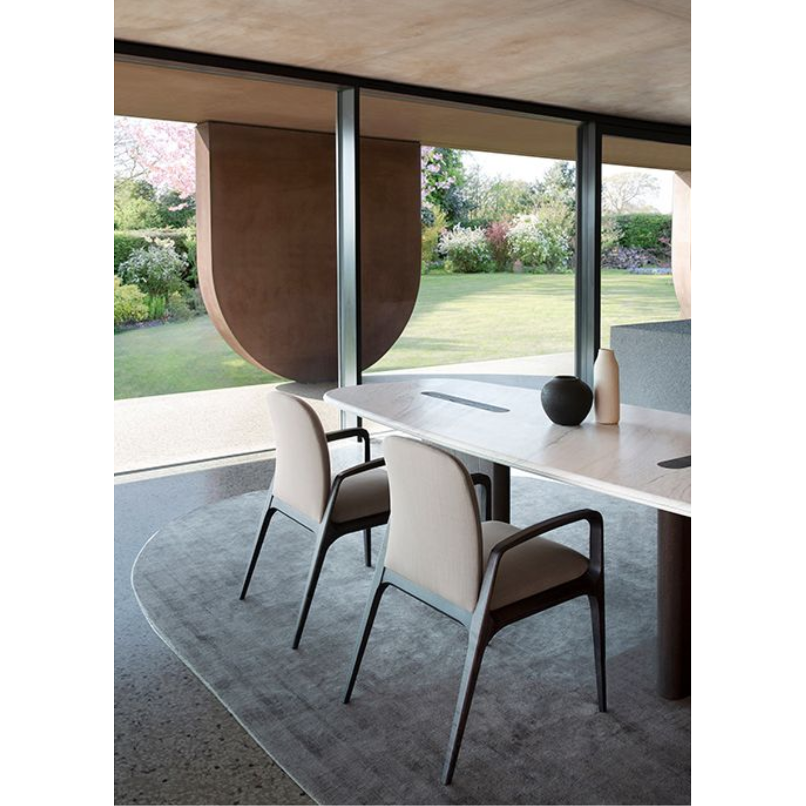 With its essential and elegant aesthetics, the Birkin chair, designed by Mateo Zorzenoni for Carpanese Home, fits naturally in any home environment. The silhouette of the seat — almost suggesting a slight movement with the sinuous line of the armrest and the swept-back rear legs— creates a perfect balance between structure and comfort, solidity and grace. Made of solid wood, Birkin comes with the seat and backrest upholstered in soft customizable fabric.