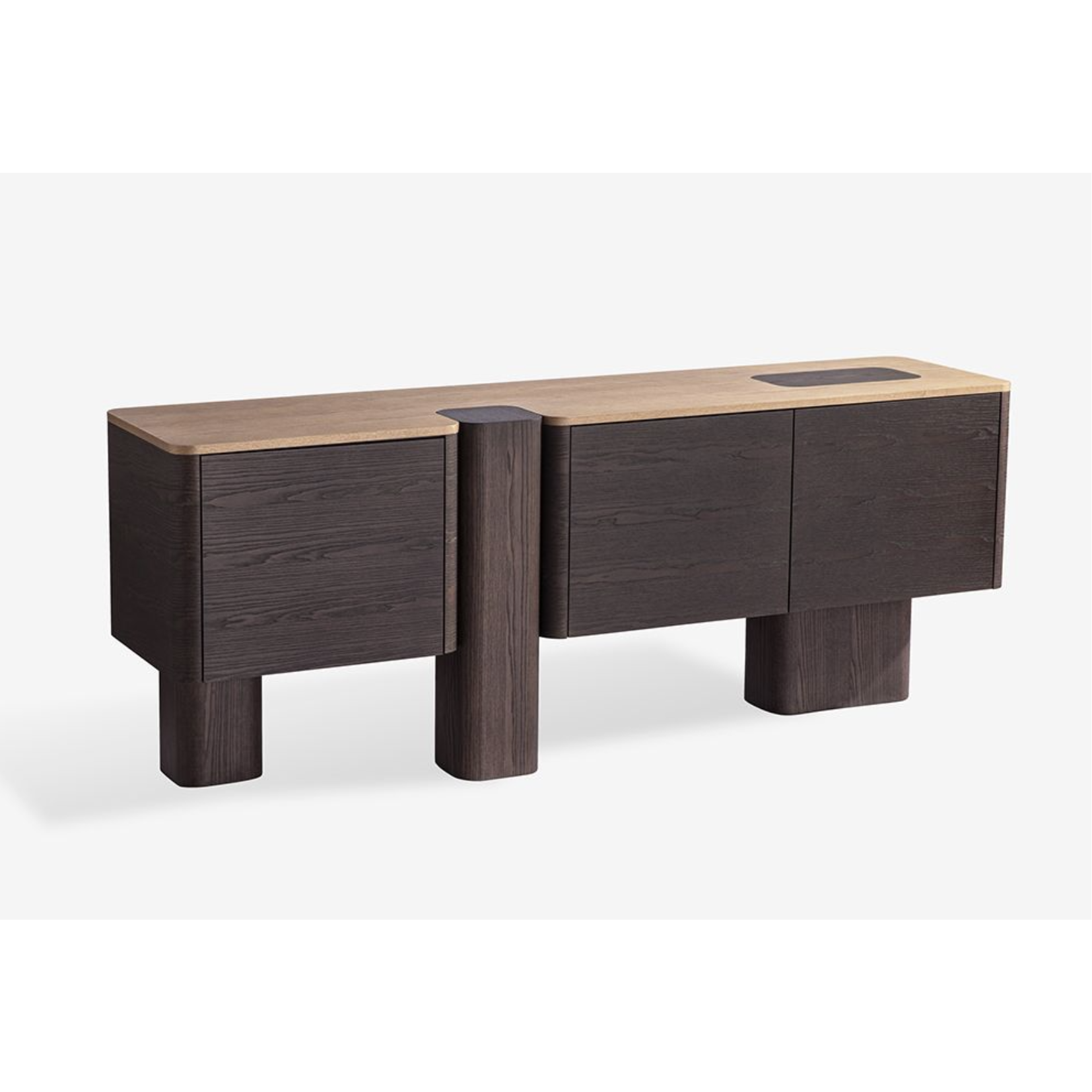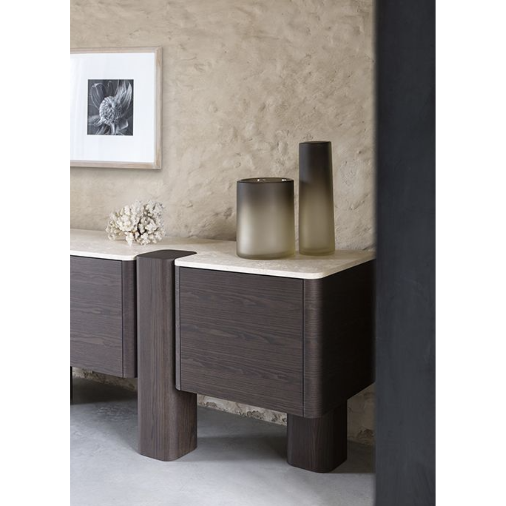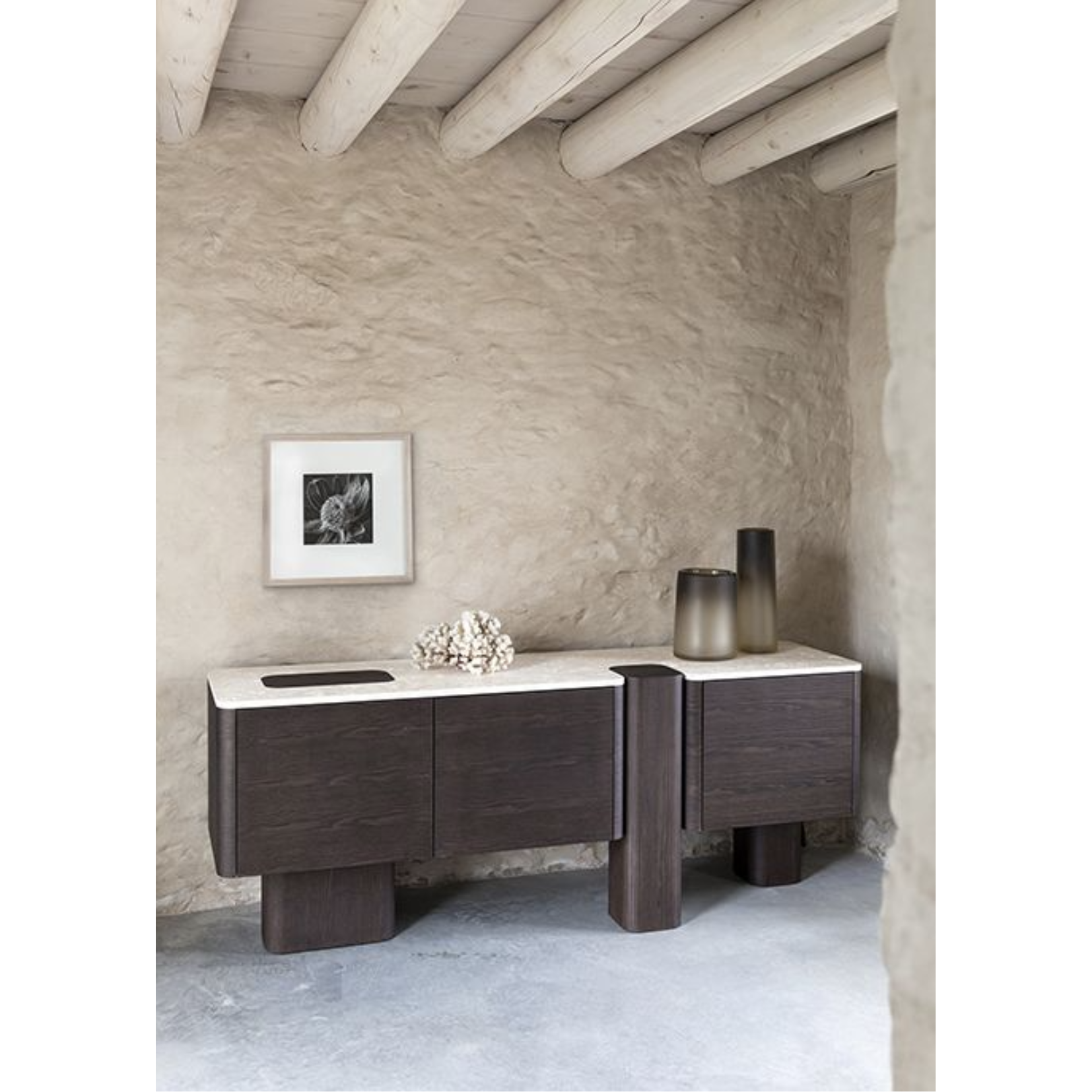 The unexpected dynamism of the silhouette is generated by the encounter of different layers of materials. The monolithic legs and generous sizes make Erice D a sideboard with an undeniable sculptural style.