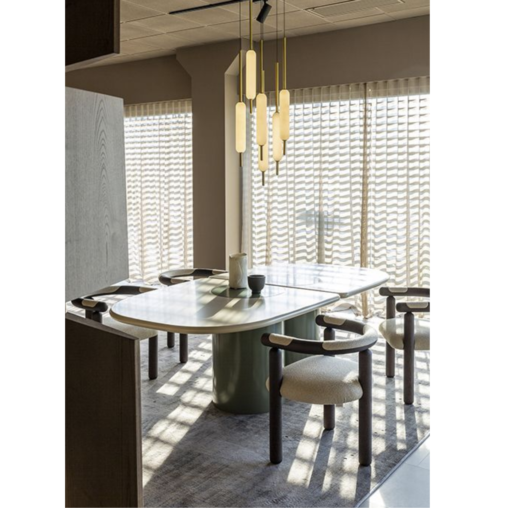 Designed by Matteo Zorzenoni for Carpanese Home, Ladybug is a generously-sized table featuring rounded and flowing lines. The cylindrical legs culminate in the top, evoking the wings of the ladybugs from which the table takes its name and creating a graphically sculptural appearance.