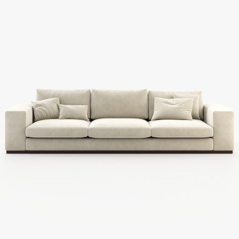 The Charlie sofa is a contemporary and comfortable piece designed for peaceful living rooms, featuring a sleek metal base and wide arms, available with chaise-longue and in two or three-seater options.