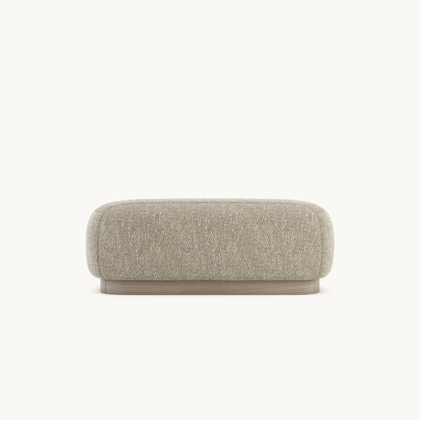 With a rounded and bulky design, the Claire Bench offers a contemporary and cosy aesthetic. The stitching details, featuring a curved contour, are available in two different finishes for added personalisation. Available in two sizes, it is the ideal piece to enhance any space with comfort and style.