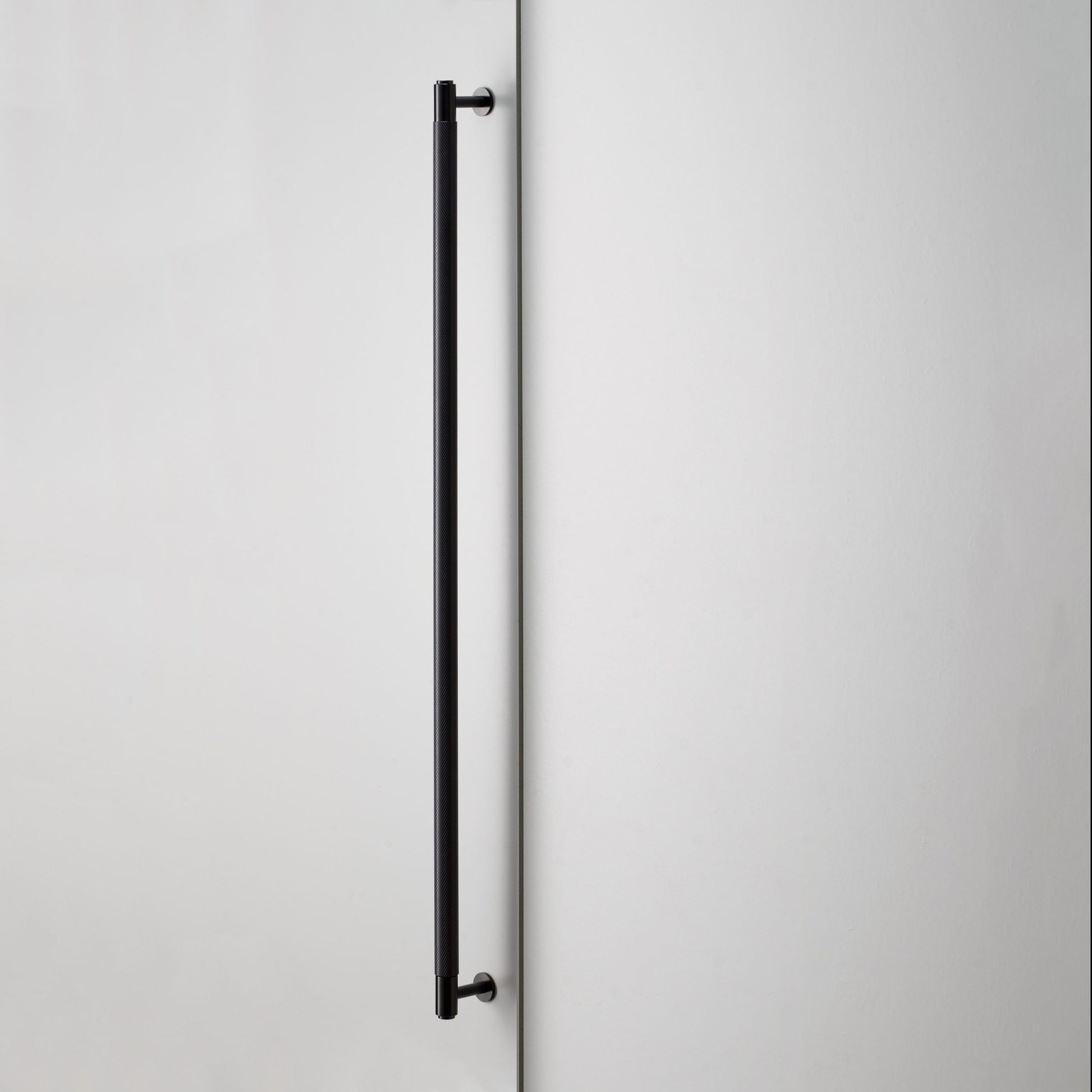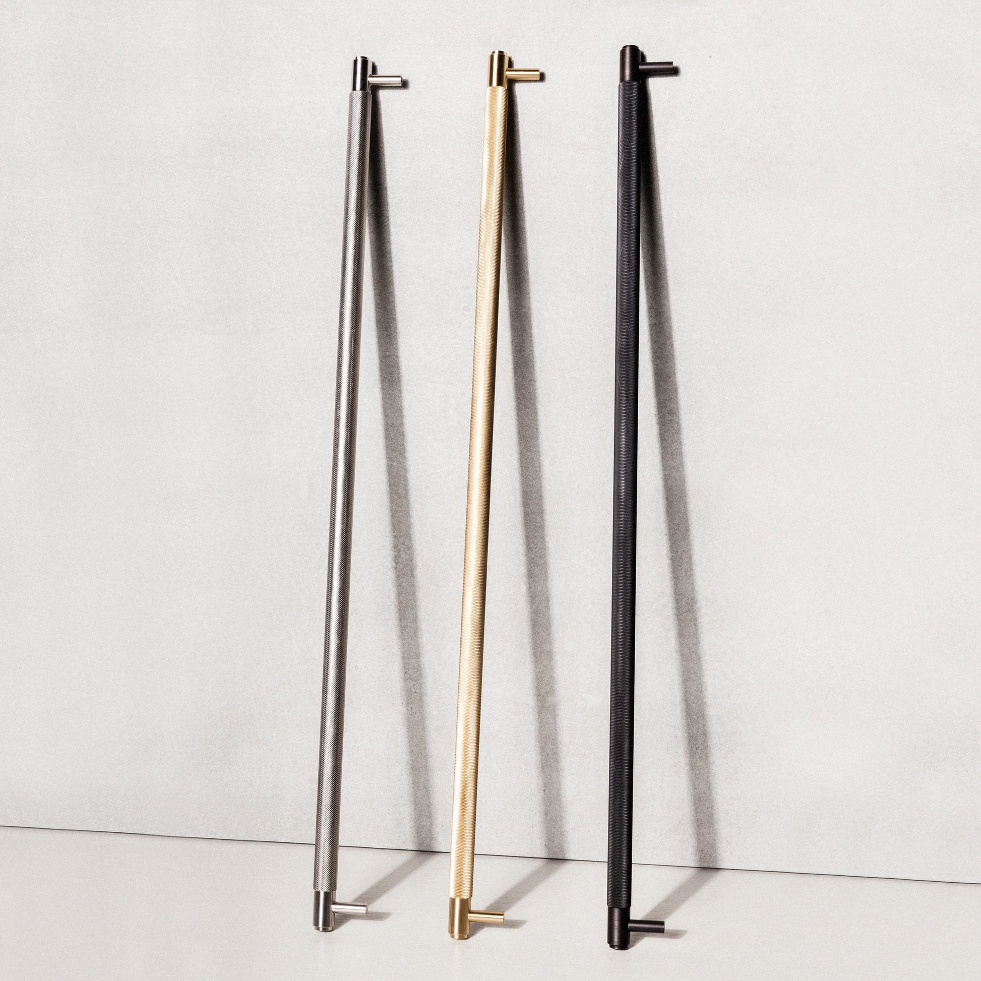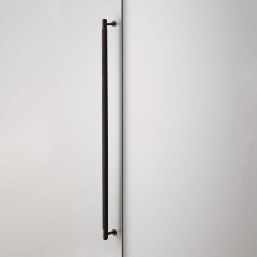 A closet bar made from solid black anodised metal. This closet bar features our signature, diamond-cut, cross knurl pattern and is refined by hand.