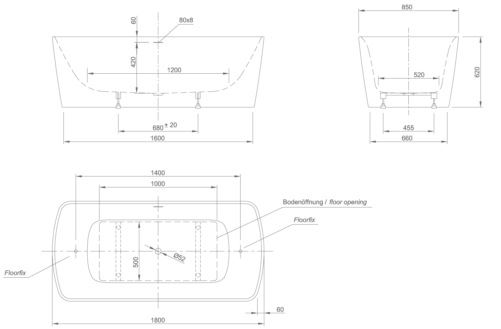 | Dimensions: | 1800 x 850 x 600 mm (L x W x H) |