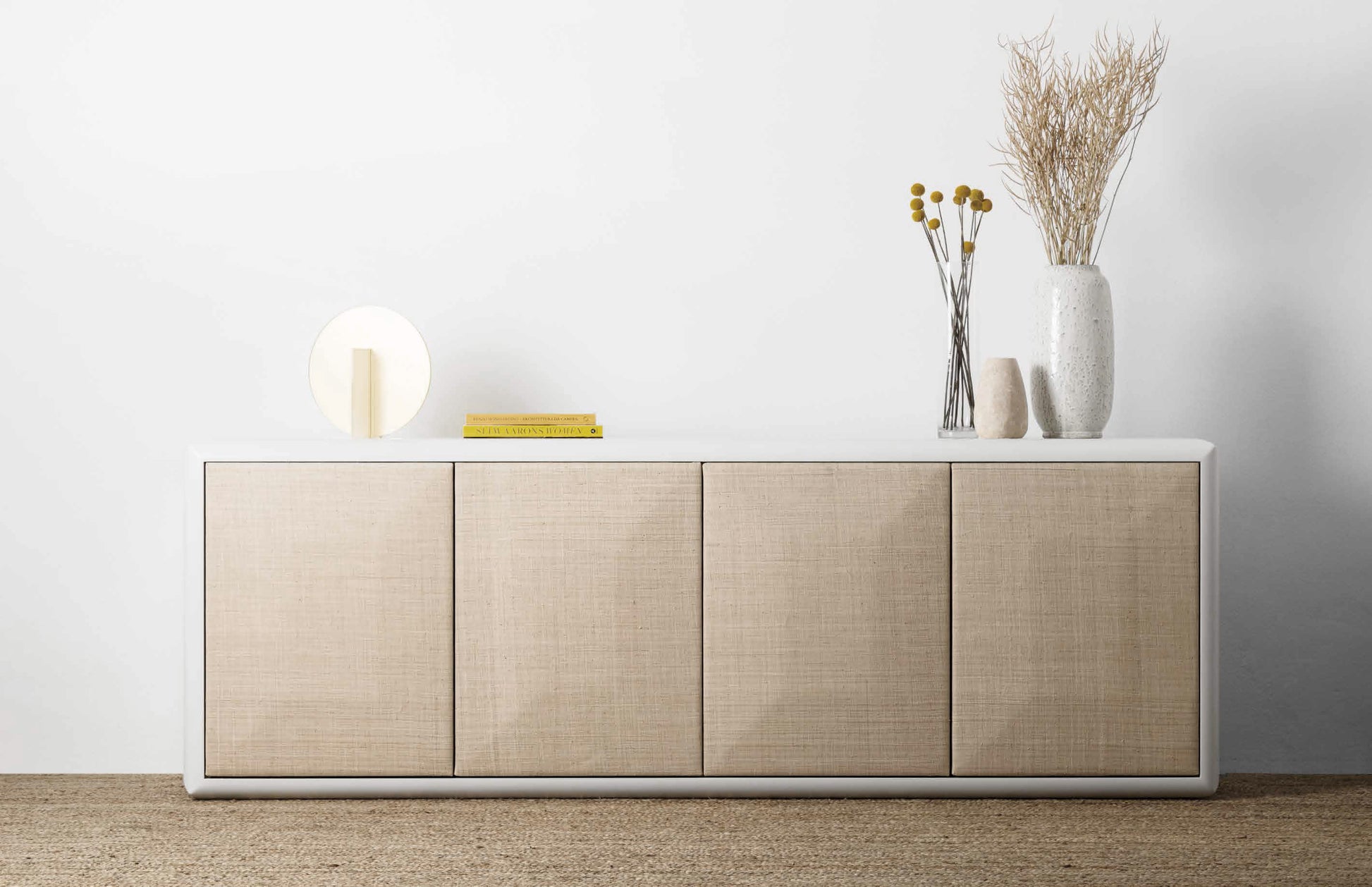 A signature piece of Collezione Riviera, Colorado features the precious shapes of pure and well-cut gems that smoothly contrast with the simplicity of the raffia doors’ configuration. The naturalness of the natural fiber and the matt lacquered frame and interiors, Colorado combines sophisticated workmanship with a contemporary design.