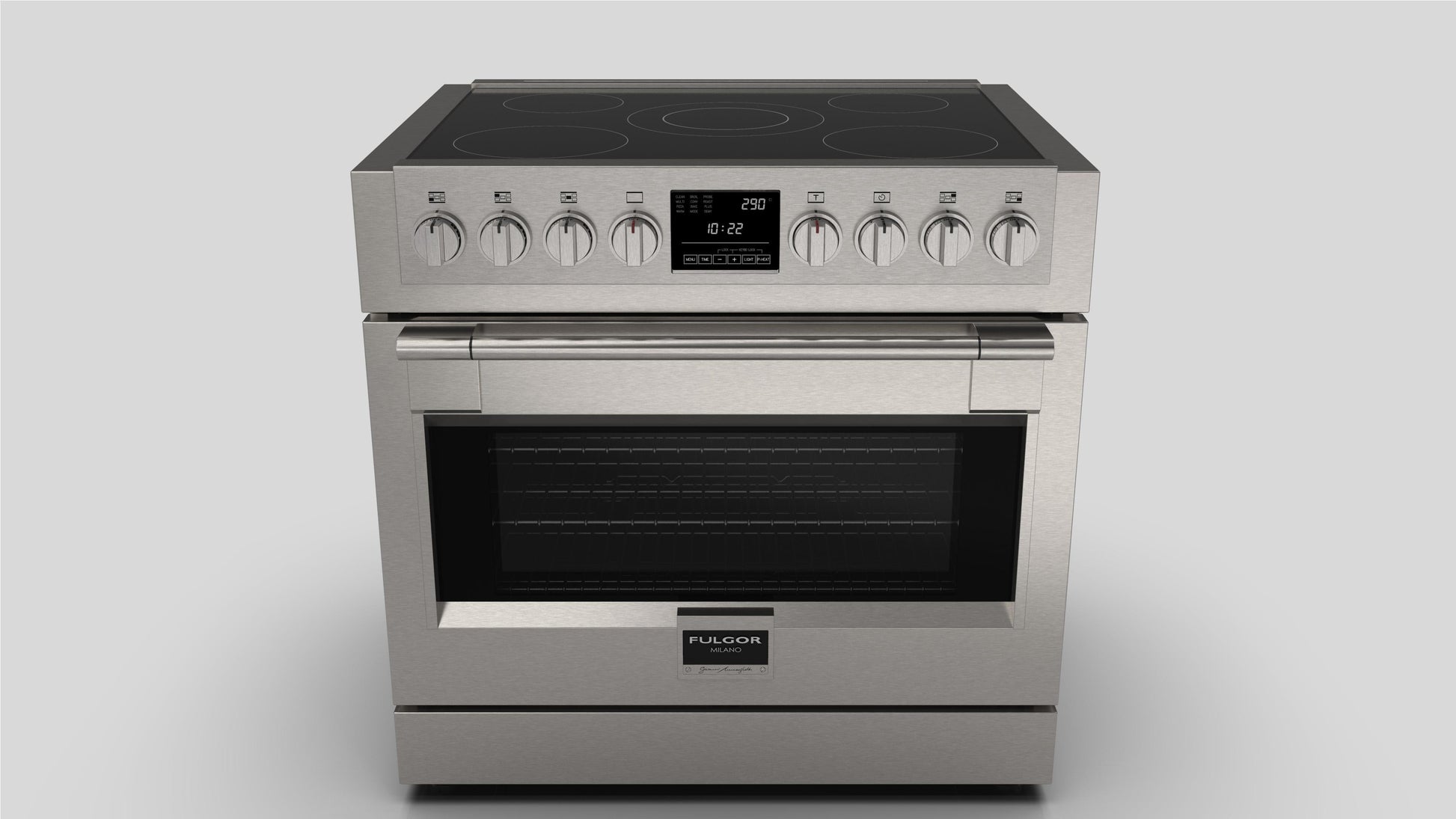 This 36 Inch Induction Freestanding Pro-Range from Fulgor Milano features True European Convection, using a fan to circulate inside the oven and allowing the food inside to cook faster and more evenly. The Four Pane Glass Door with cool-door technology ensures you will never have to worry about accidentally touching a hot oven door. A Self-Cleaning mode means you won't have to scrub the interior to keep it clean. The 20W Halogen Lighting provides plenty of light for easy viewing. The Meat Probe is perfect for keeping tabs on large roasts and poultry dishes. When your dish reaches the preset internal temperature, the oven beeps and turns itself off - giving you optimal temperature control.