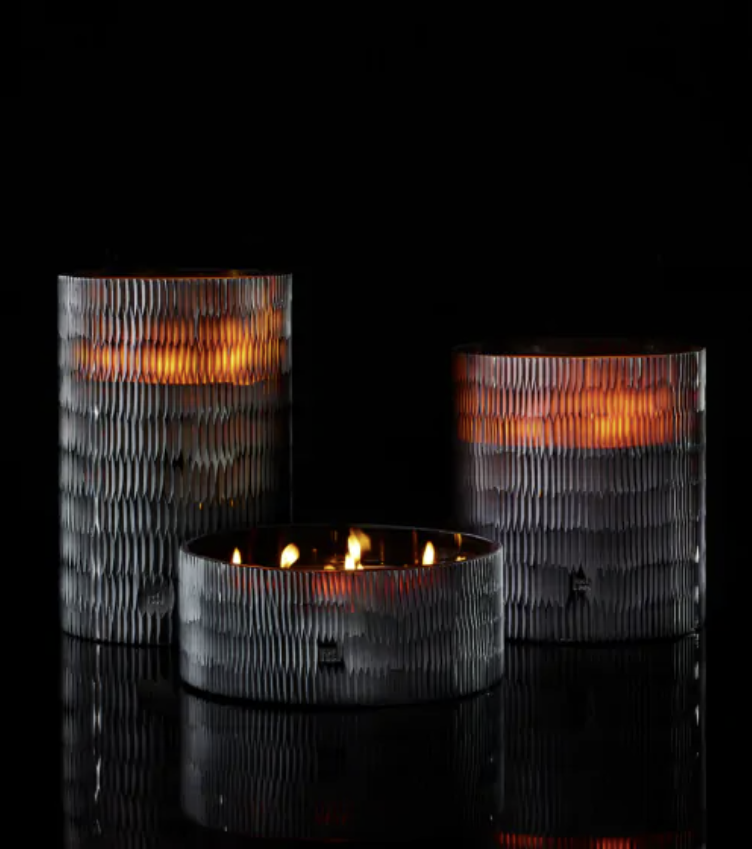 Ilse Vandeputte: “This is a design based on my visit to the Masai in Africa. A drawing based on their spears, vital for survival in their everyday life. Light the candle and this design will warm up your interior with the coziness of an open fireplace.”