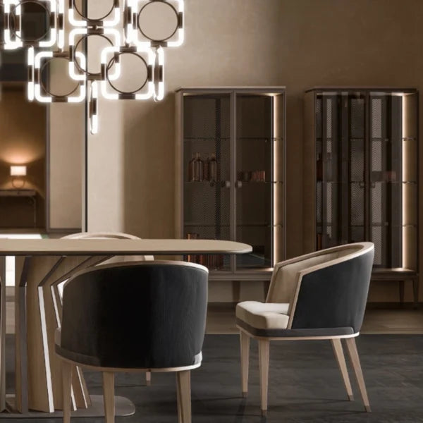 Complementing a complete collection of living and dining room furnishings, the Engraved Glass Showcase features a chic zig-zag engraving on the back of the cases. With three glass shelves and glass doors on a metal base, the showcase is perfect for displaying crystal, Murano glass sculptures or other precious objects.