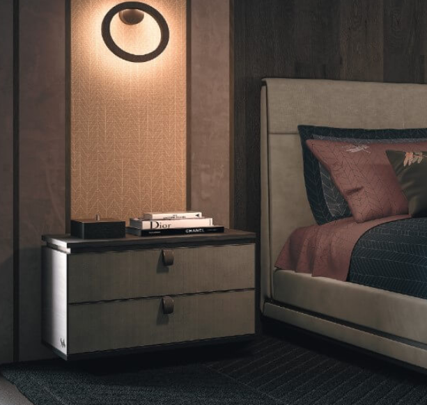 DRAGONFLY is a nightstand with leather drawers and wood frame