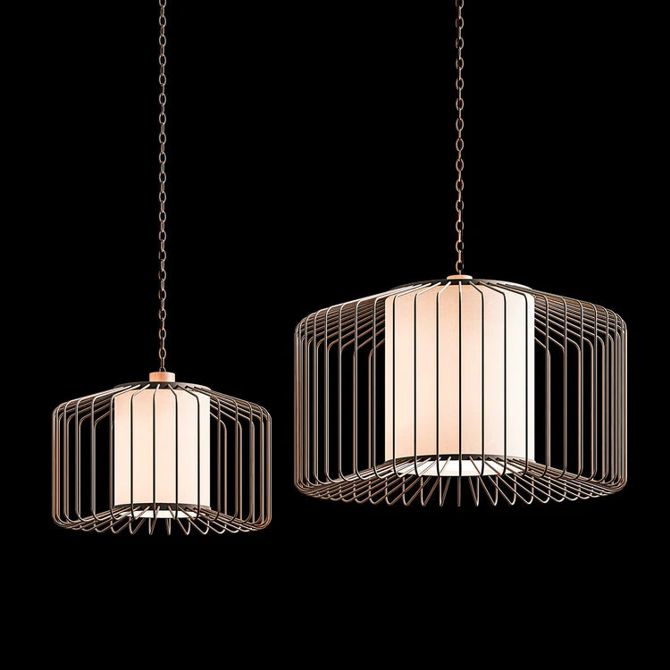 The Chandelier features a clean design inspired by the industrial architectural style. It features a metal structure containing a fabric lampshade and this simple, yet exceptionally stylish chandelier will bring a raw and elegant look to any room in your home or office.