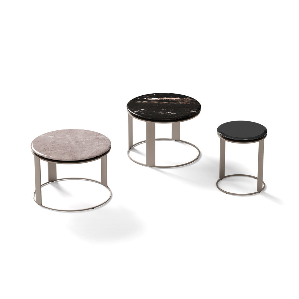 Denis is a coffee table with lacquered wooden top and metal structure.