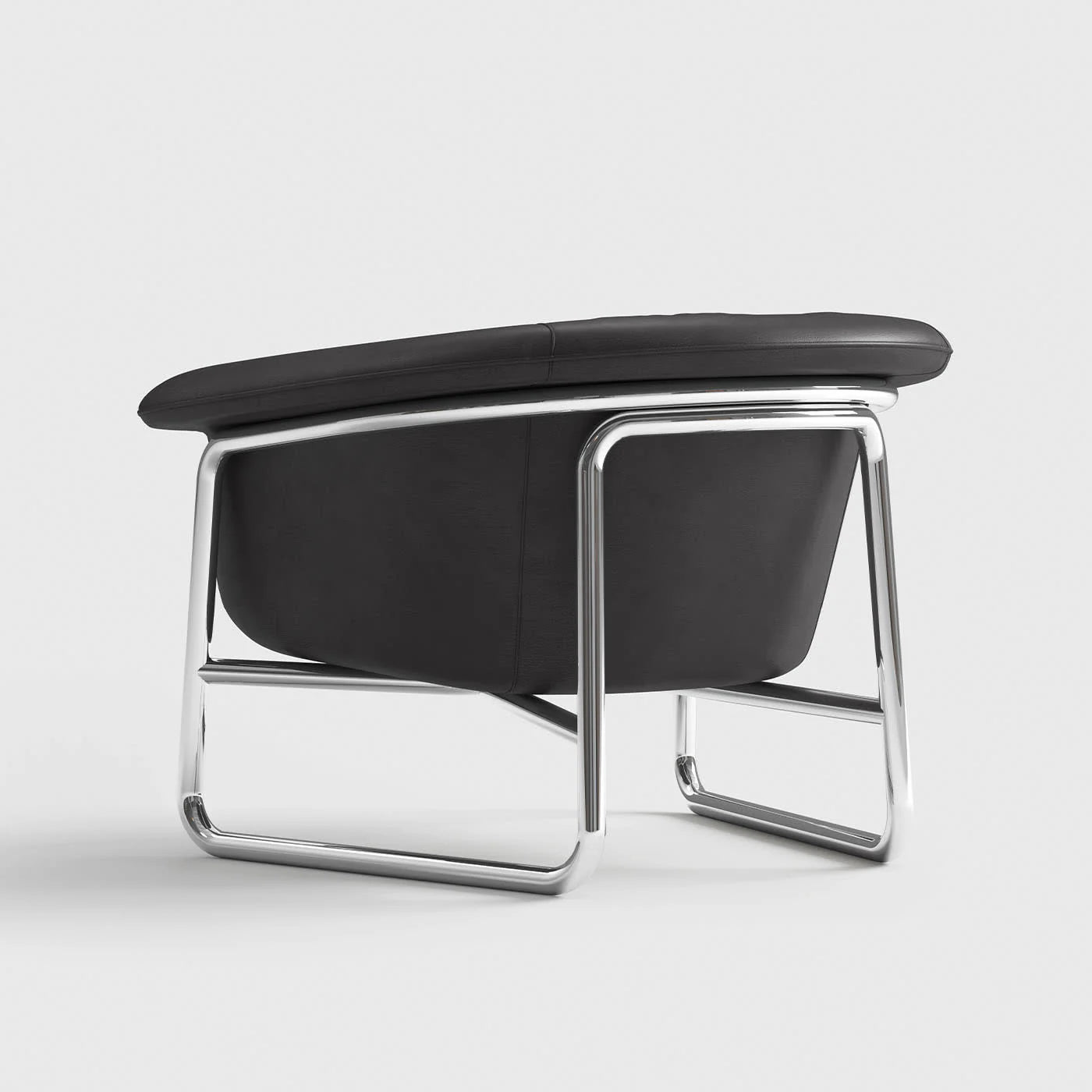 FERNANDA is an armchair with metal structure, upholstered with leather.