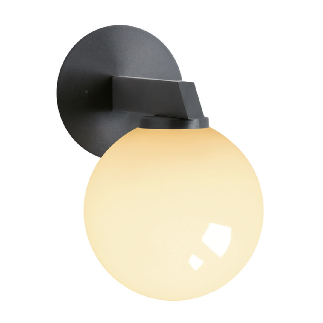 The Gaia Wall Sconce brings a clean precision to your interior space. The handblown glass shade rests comfortably on the smooth frame, casting warm shadows across your room. May be mounted up or down.