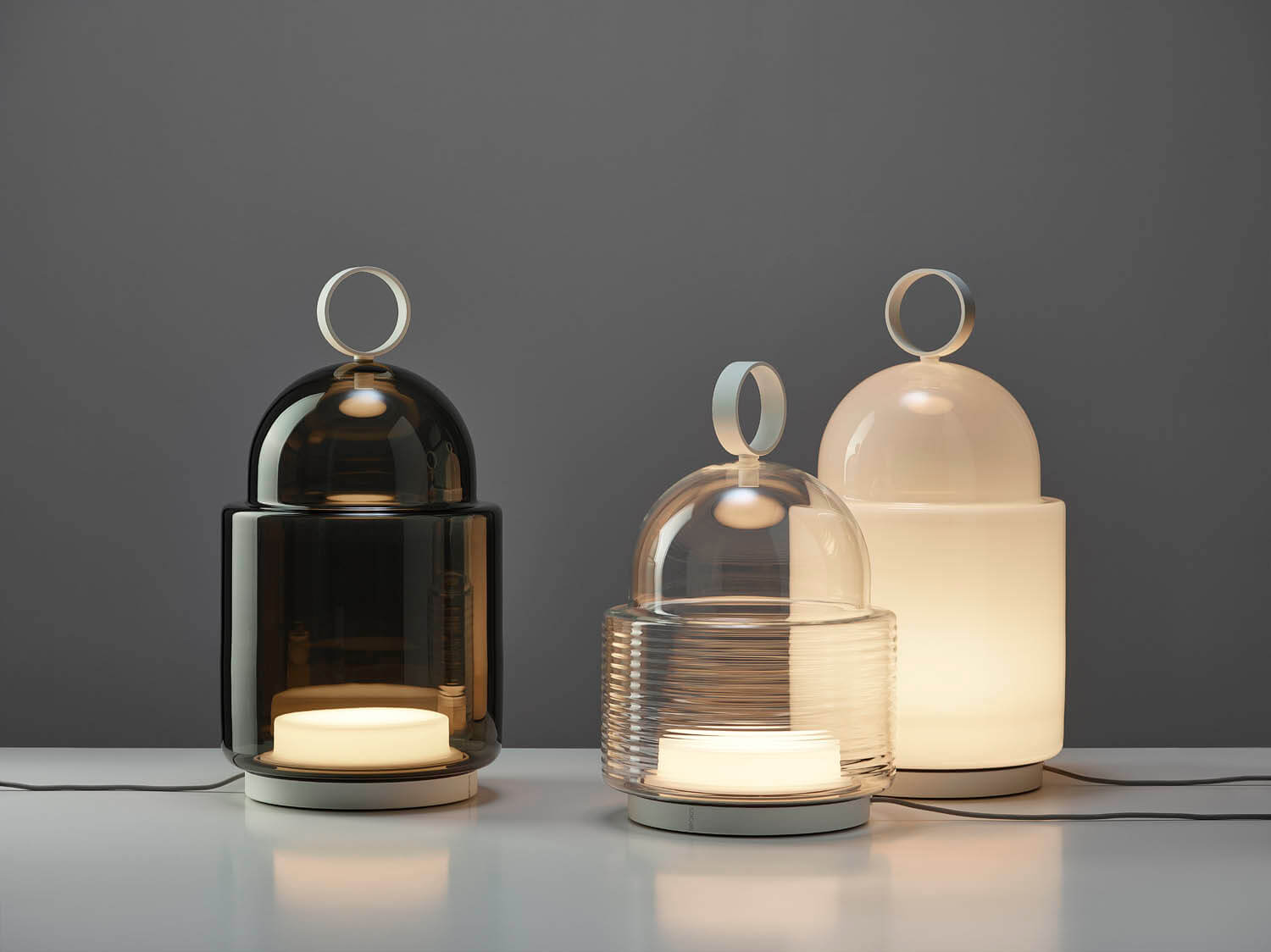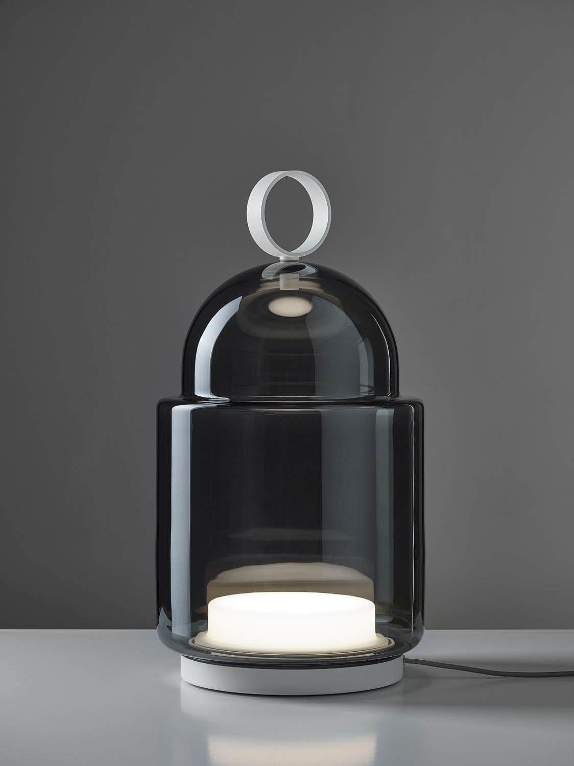 The Dome Nomad Lines Table / Floor Lamp is inspired by Italian architecture. It features a smooth Glass dome over an integrated LED module. This portable lamp includes a USB charging cable. Can be placed on a table or floor, and is also suitable for hanging. Complies with the IP44 safety and technological standards for outdoor lighting. On/Off/Brightness touch control on base.