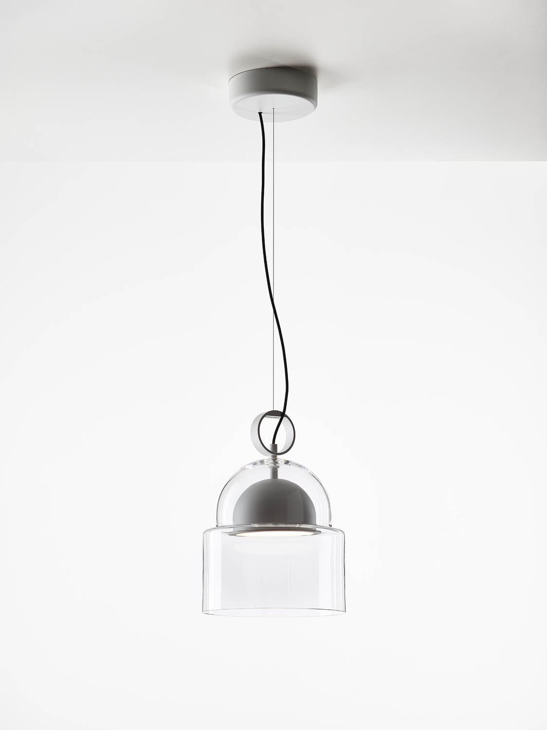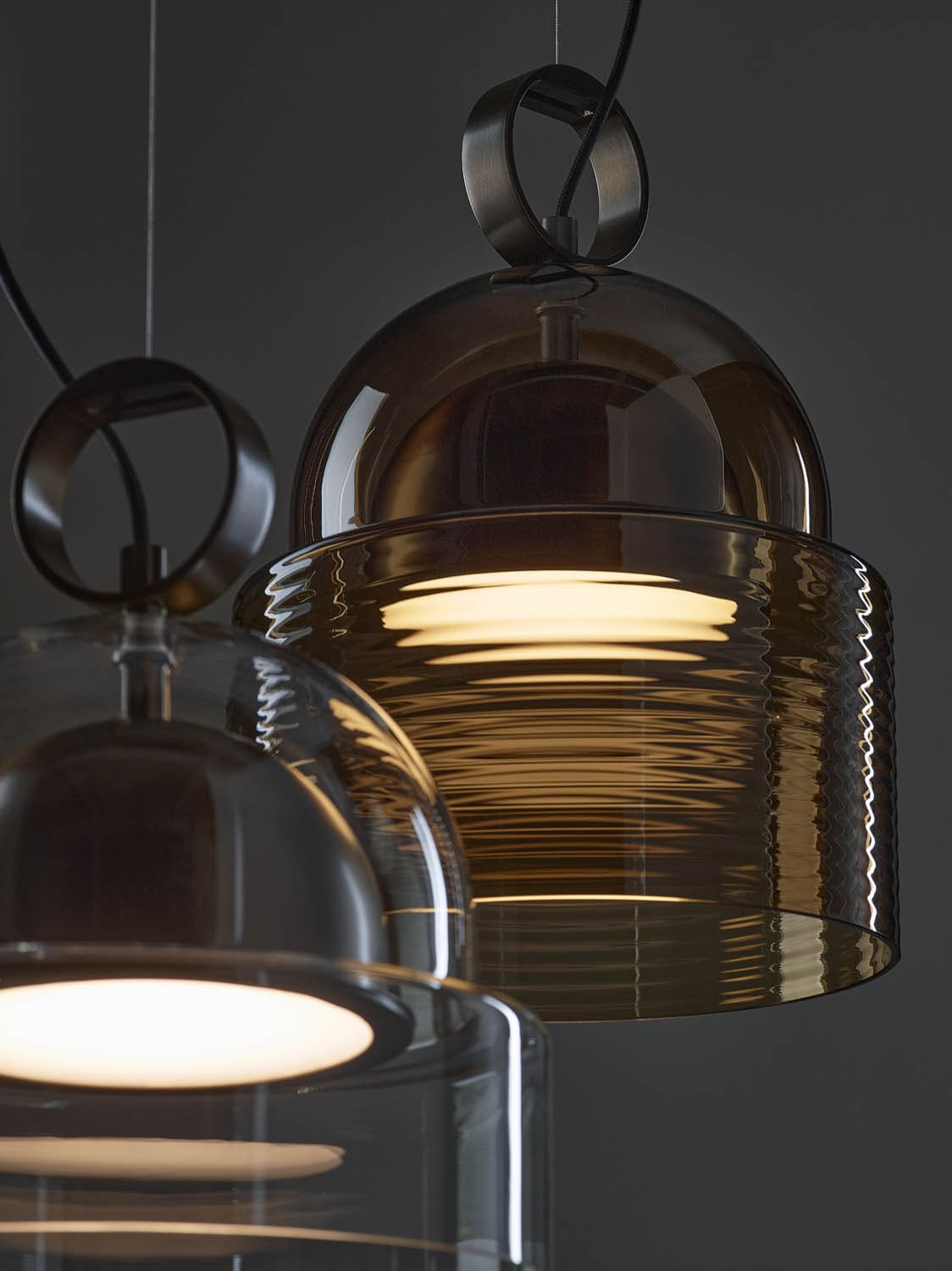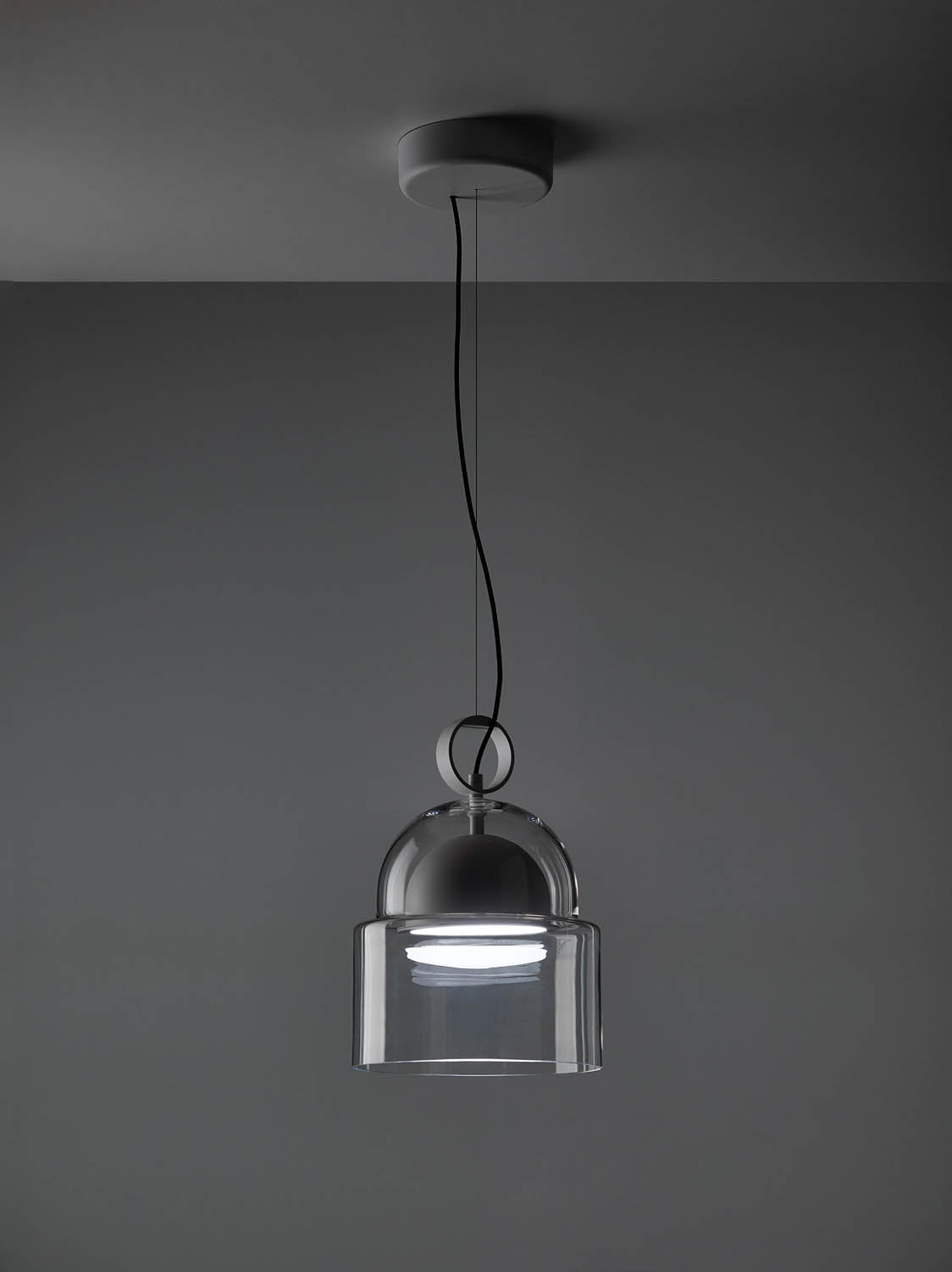 A nod to classical Roman architecture, the new Dome collection of pendant and table lights follows the success of Dome Nomad, an earlier collection inspired by the great domes of Venice and evoking the eternity and expansiveness of the celestial vault. The elegant shade, comprising multiple layers of molten glass, each carefully inspected by the master glassmaker prior to blowing, comes in either smooth or wavy clear glass. The gentle illumination is cast forth from a modern LED source concealed beneath an opal diffuser.