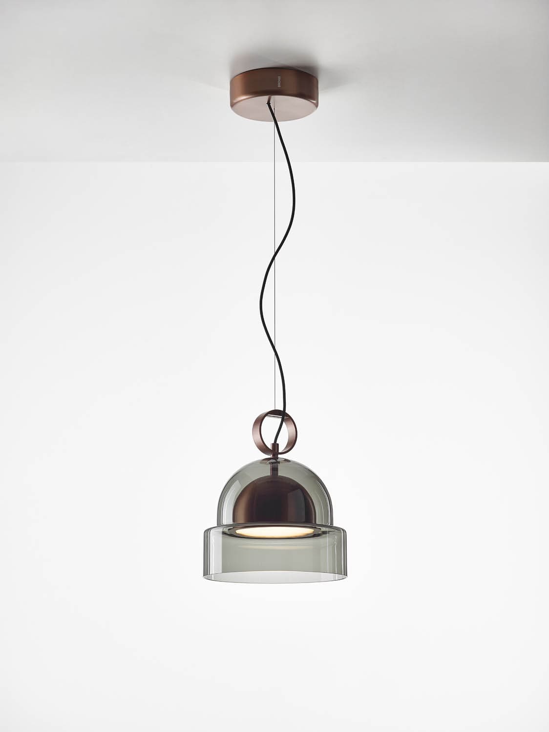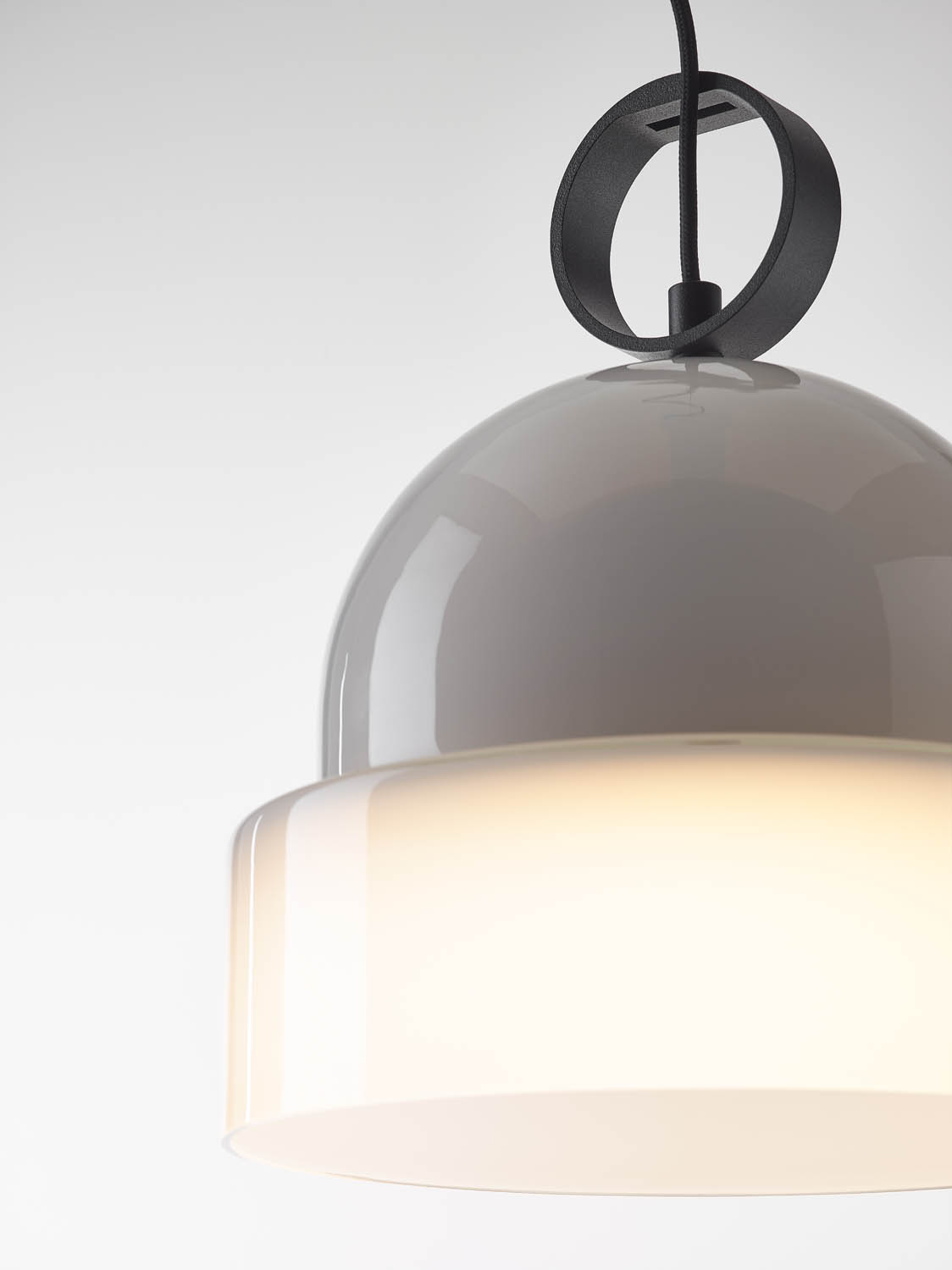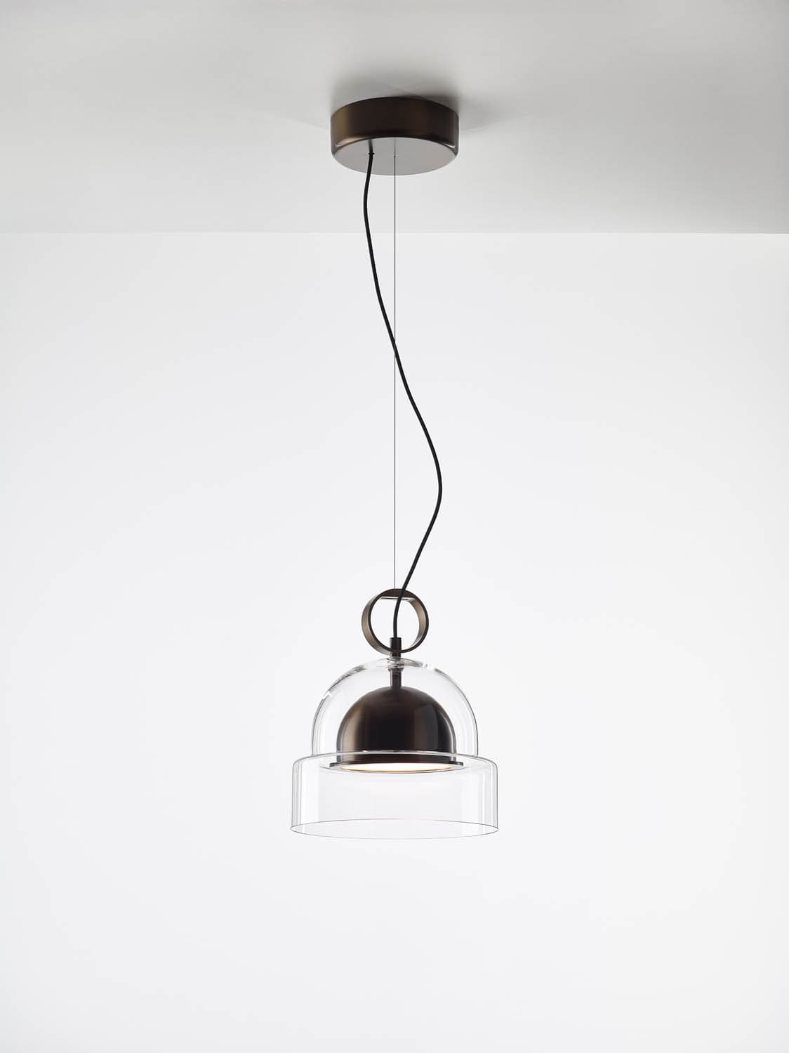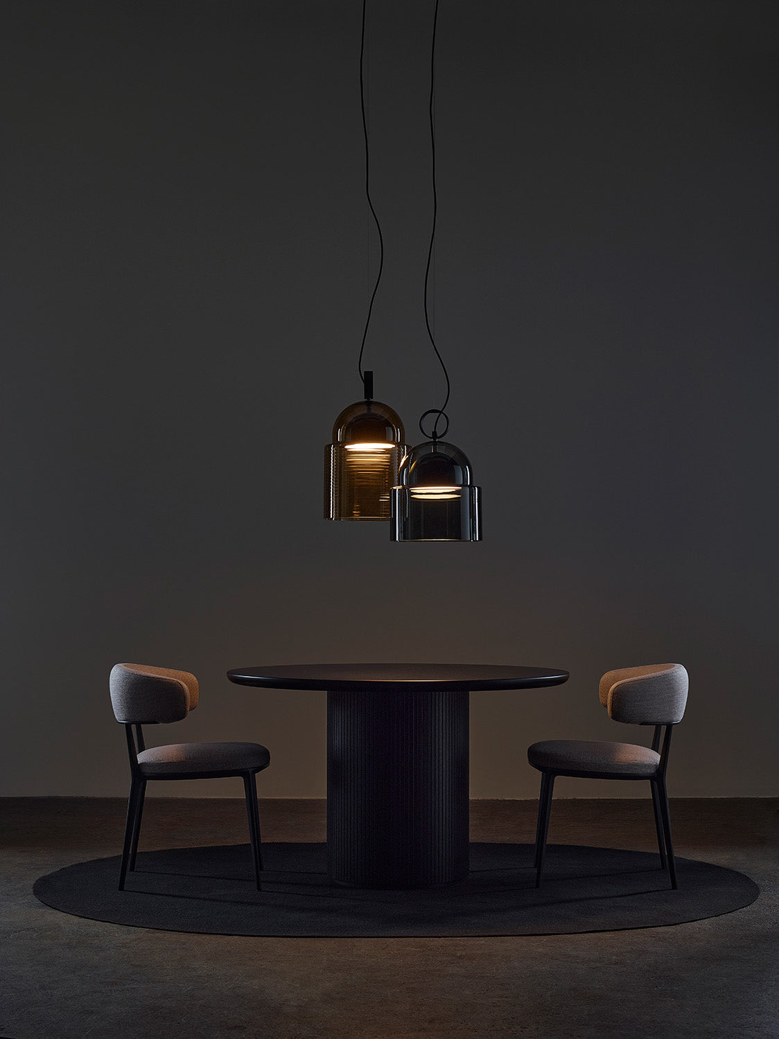 The table lights are a reference to Dome Nomad and represent an elegant interior element. The pendants, with the levity of their delicate arches, are ideal above dining tables, either in multi-light compositions, or as a solitary piece. Dome delivers a unique and charming design experience in both residential and commercial spaces.