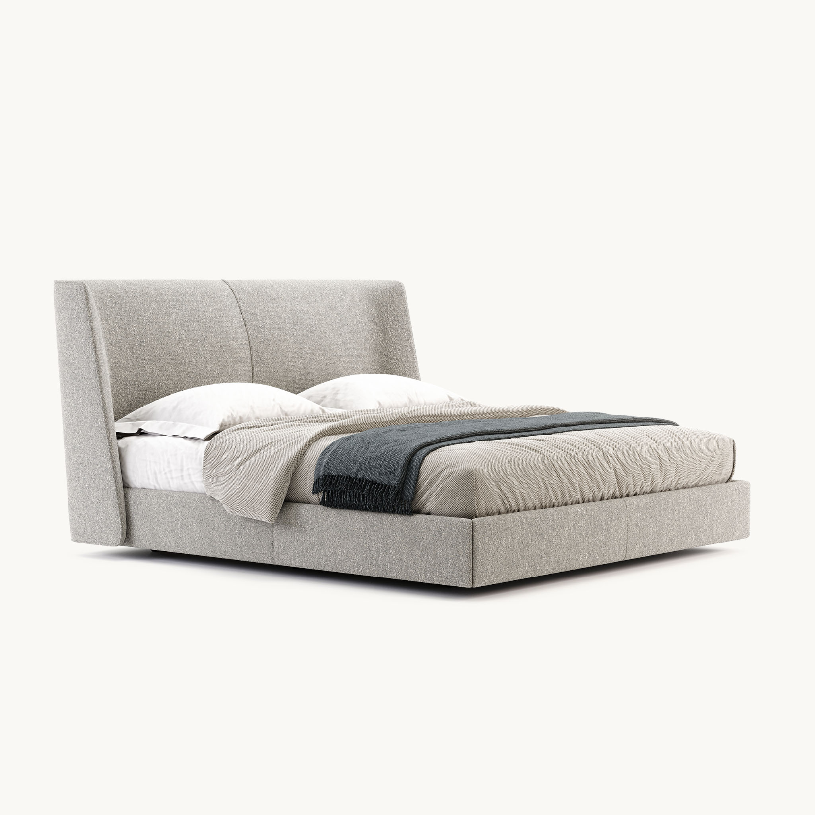 It also features a distinctive wrap-around headboard, with elegant wings for moments of intimacy and shelter. Another detail you can find is the delicate piping that embellished the upholstery.