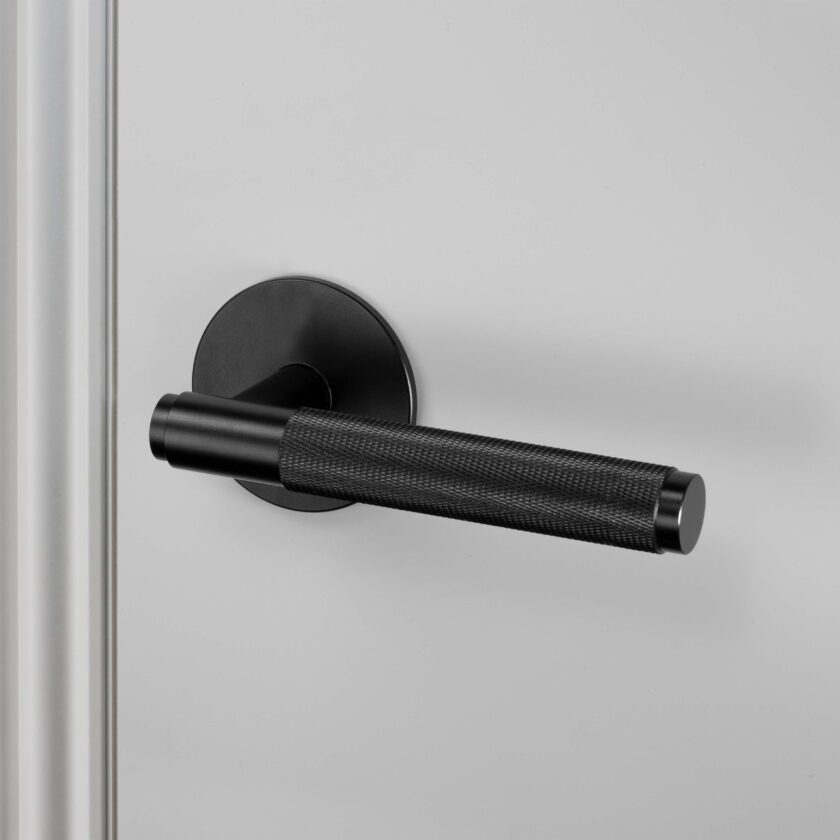 A passage door handle set made from solid smoked brass. This door handle features our signature, diamond-cut, cross-knurl pattern and is refined by hand. Comes complete with a 2 3/8” backset US passage tubular latch with through bolt fixings.