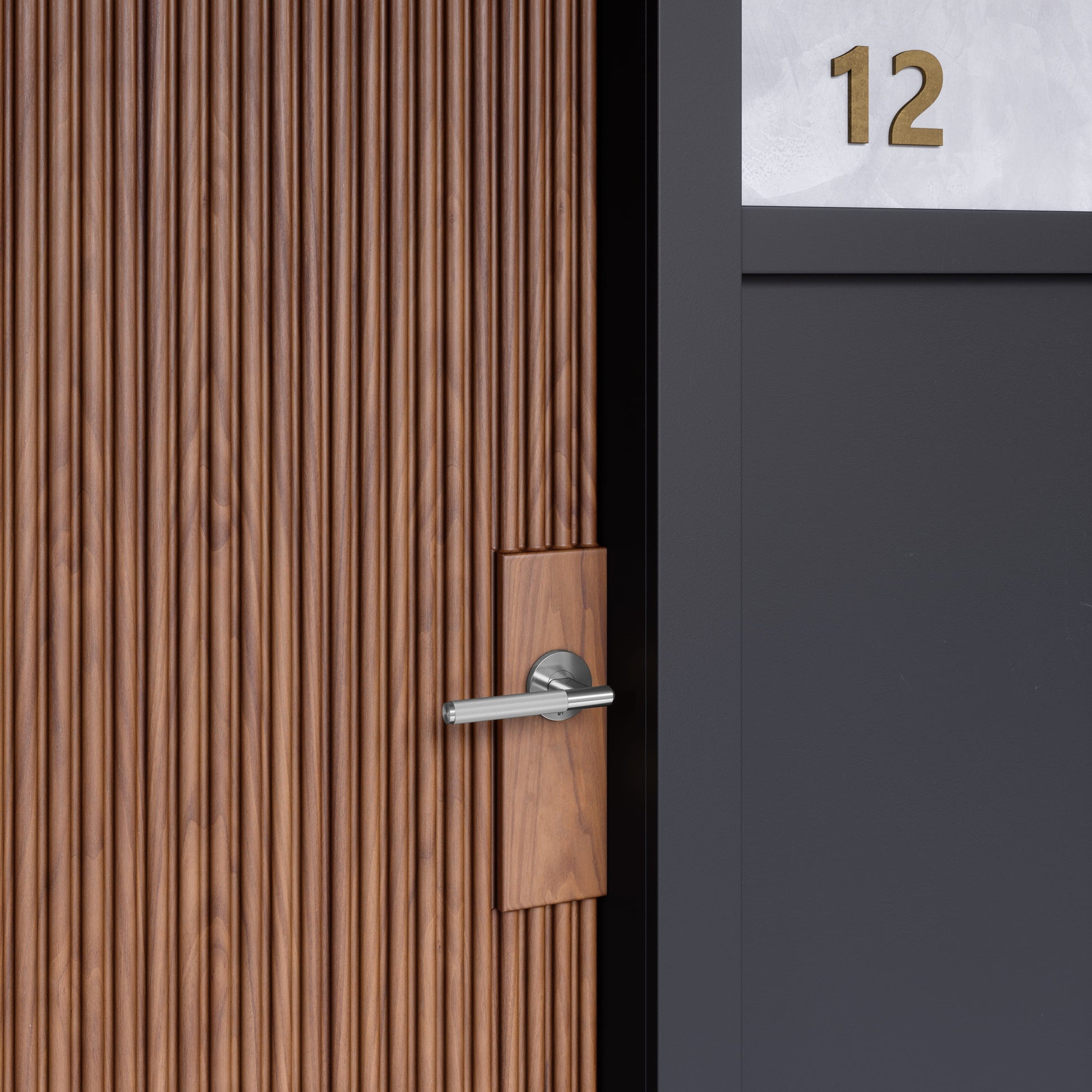 A door lever handle made from solid metal and featuring our elegant linear-knurl detailing, torx screws and laser etched Buster + Punch insignia. Works great on all internal doors and can be combined with our matching door accessories.