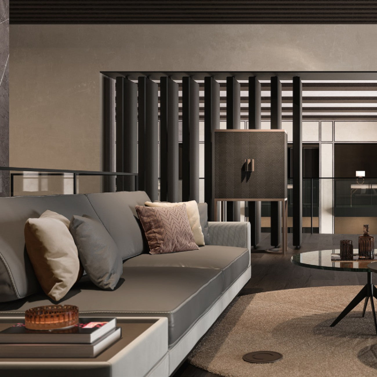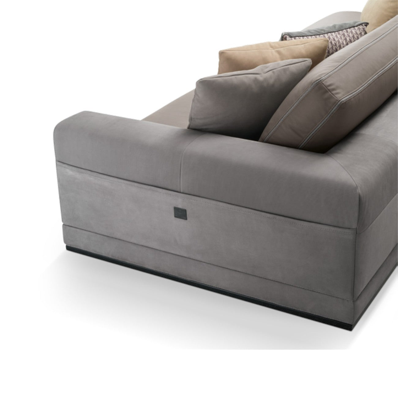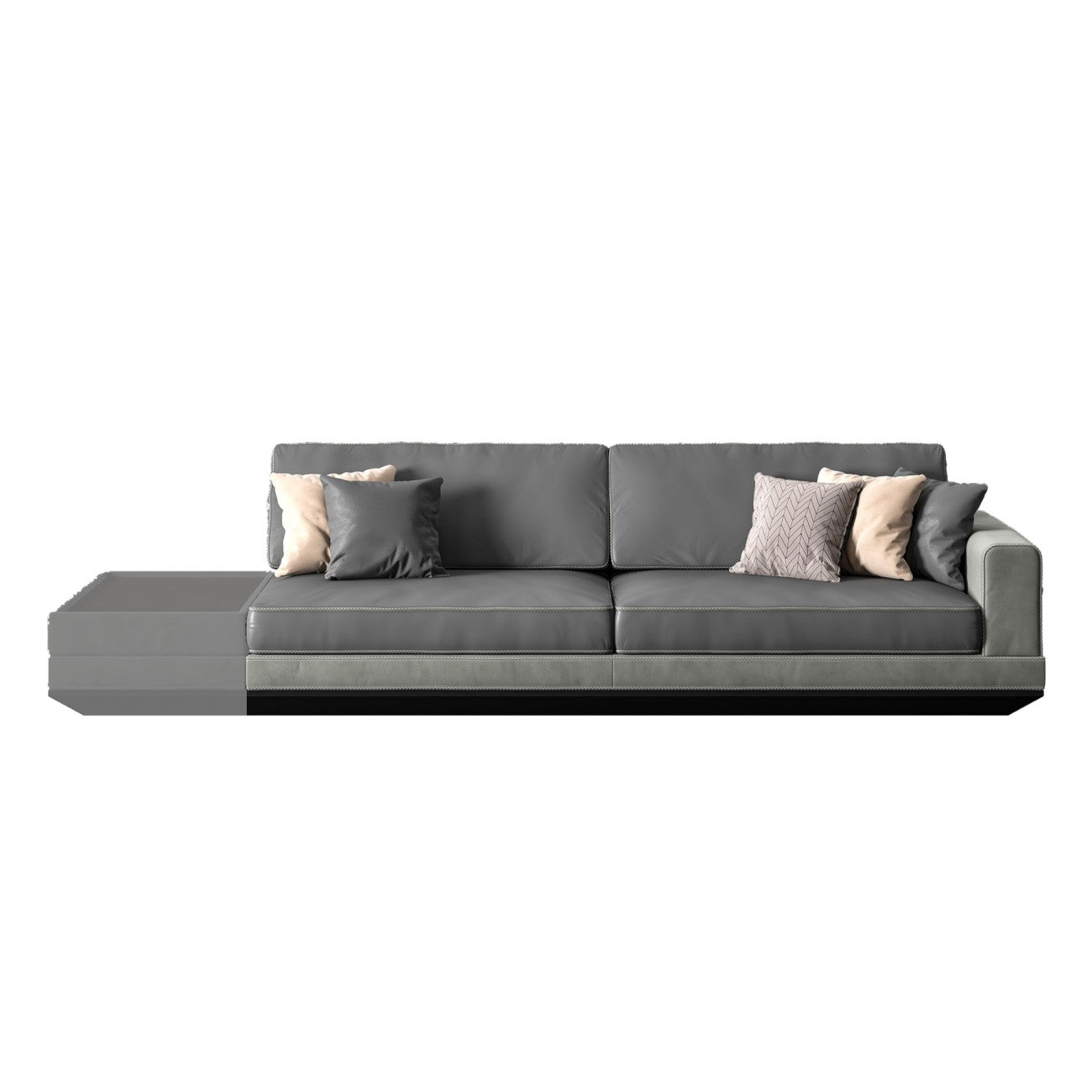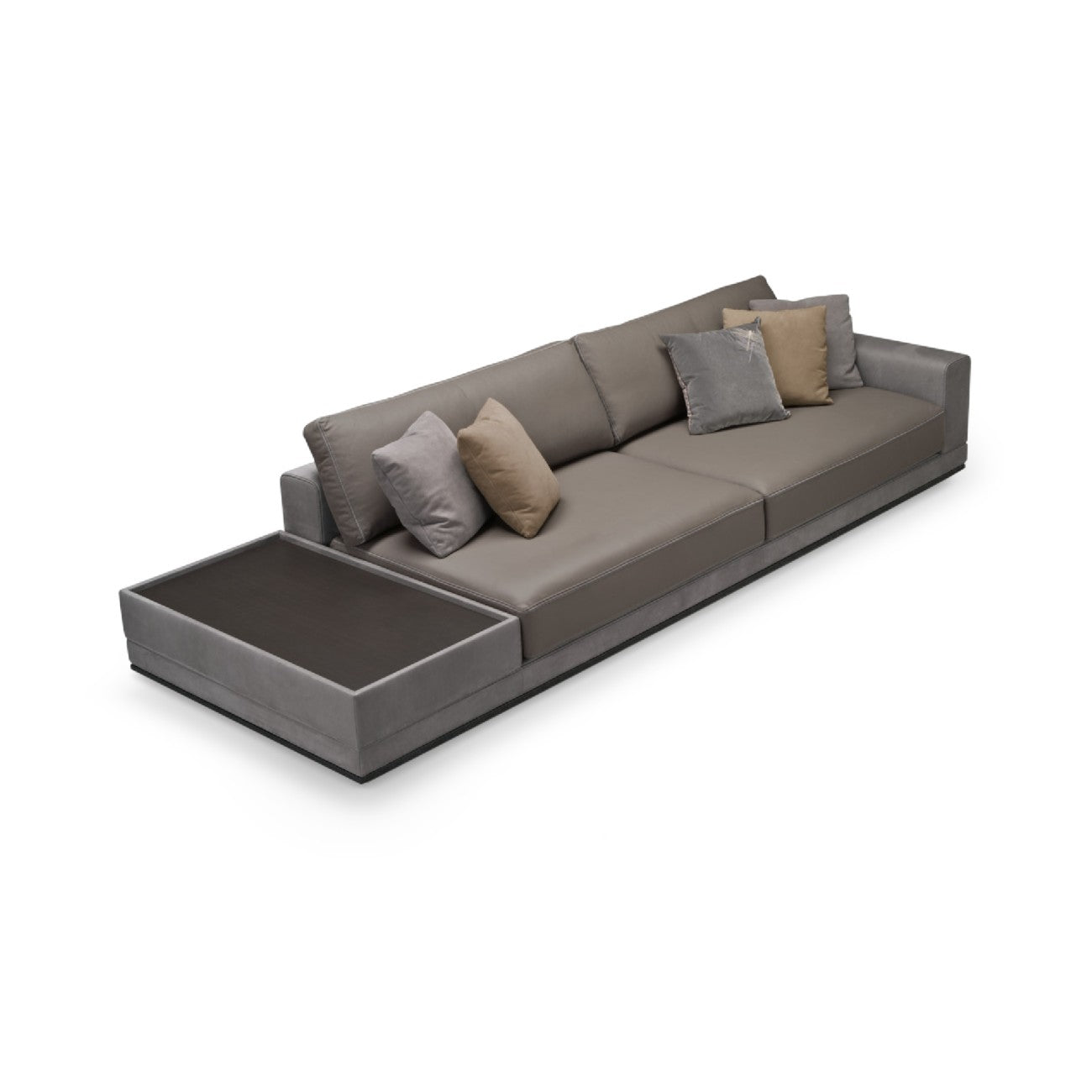 The 3 Seater Extra with 1 Armrest of Dragonfly Collection by CPRN Homood is an elegant piece of furniture. Characterized by upholstered in nabuk leather, woodwn base and upholstered side table. Frame, cushions and side table are also available in various leather and fabric combination.