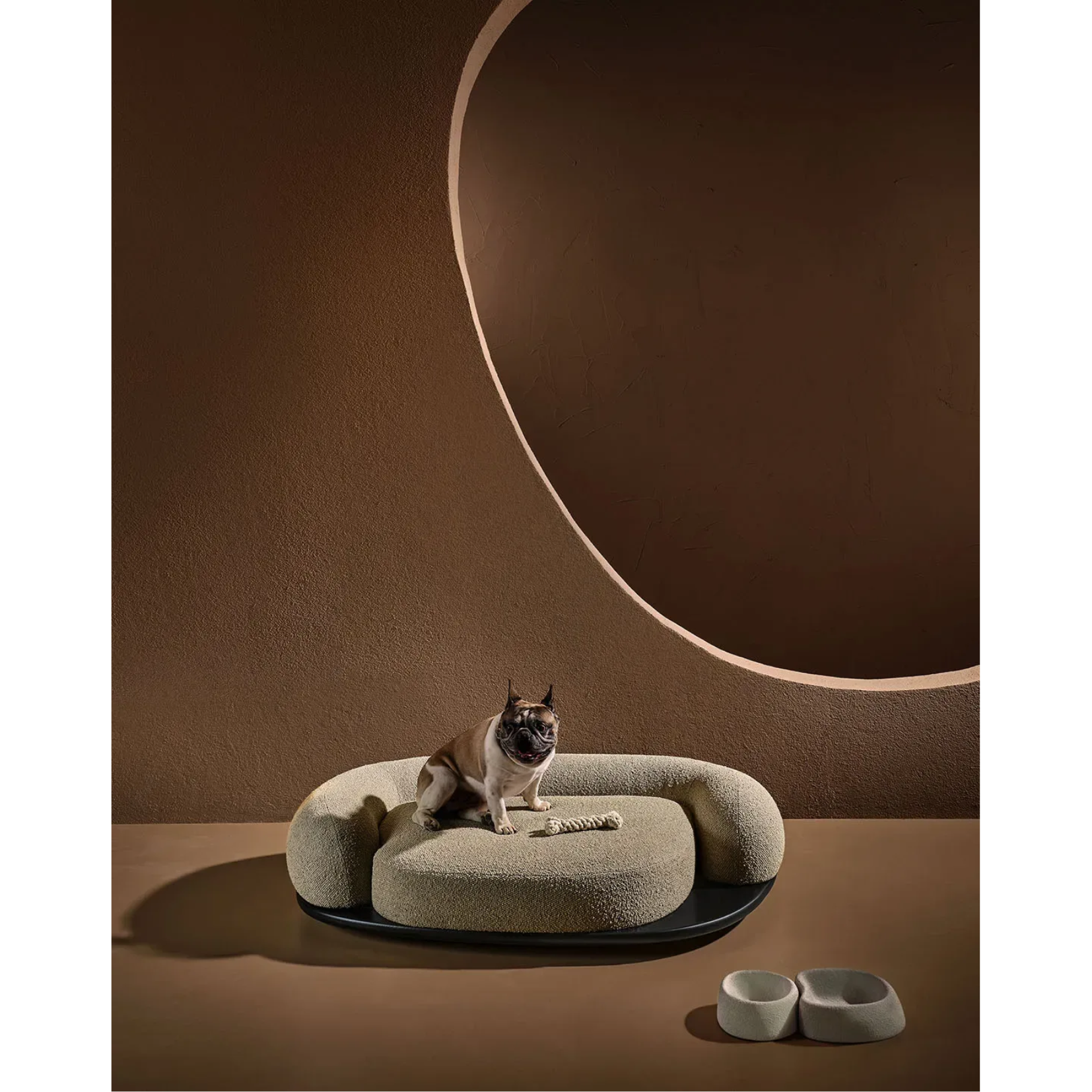 The dog bed is accompanied by the ceramic Bubble bowls, whose fluid, sinuous shape evokes softness and lightness, while its perfect nesting design makes the set a unique visual element.