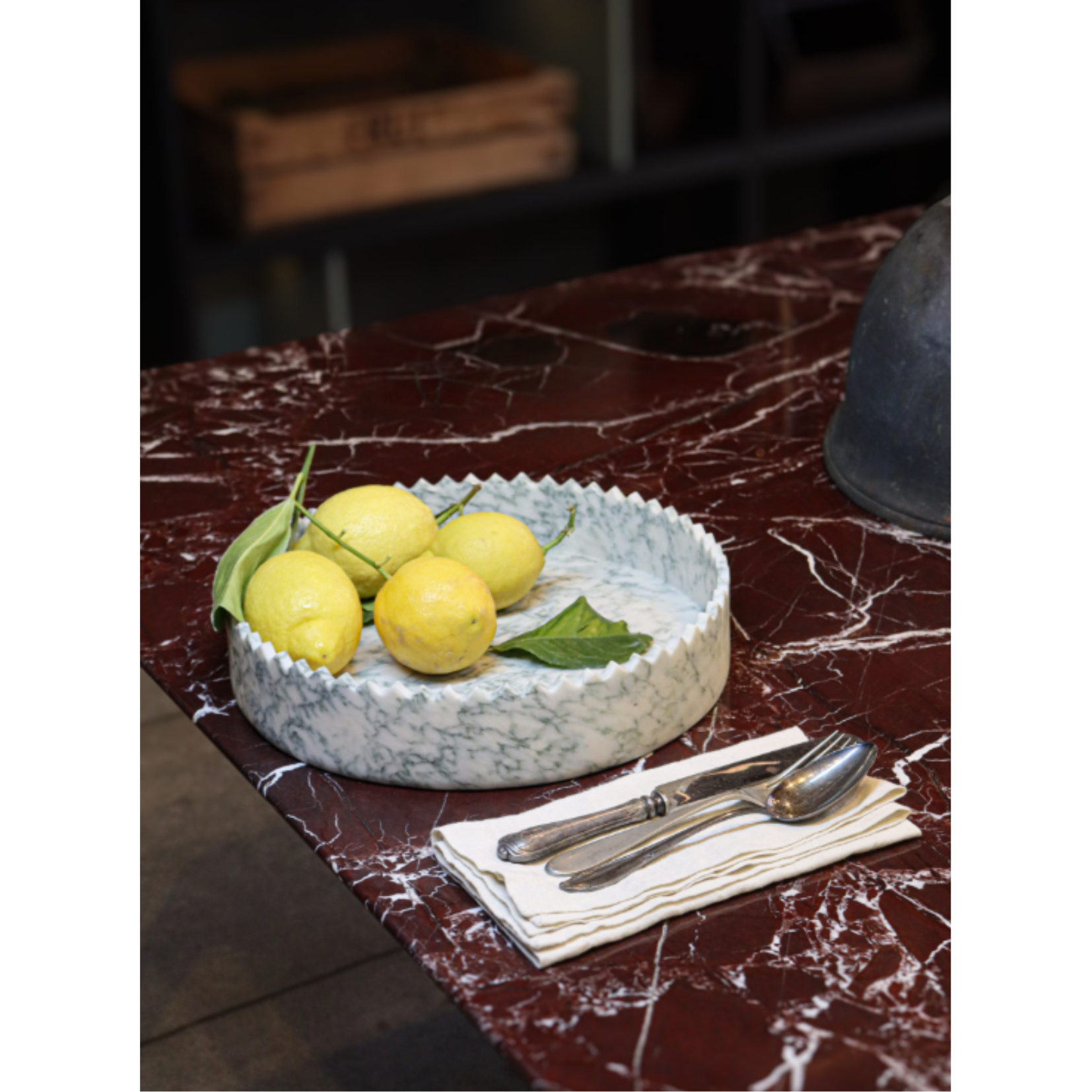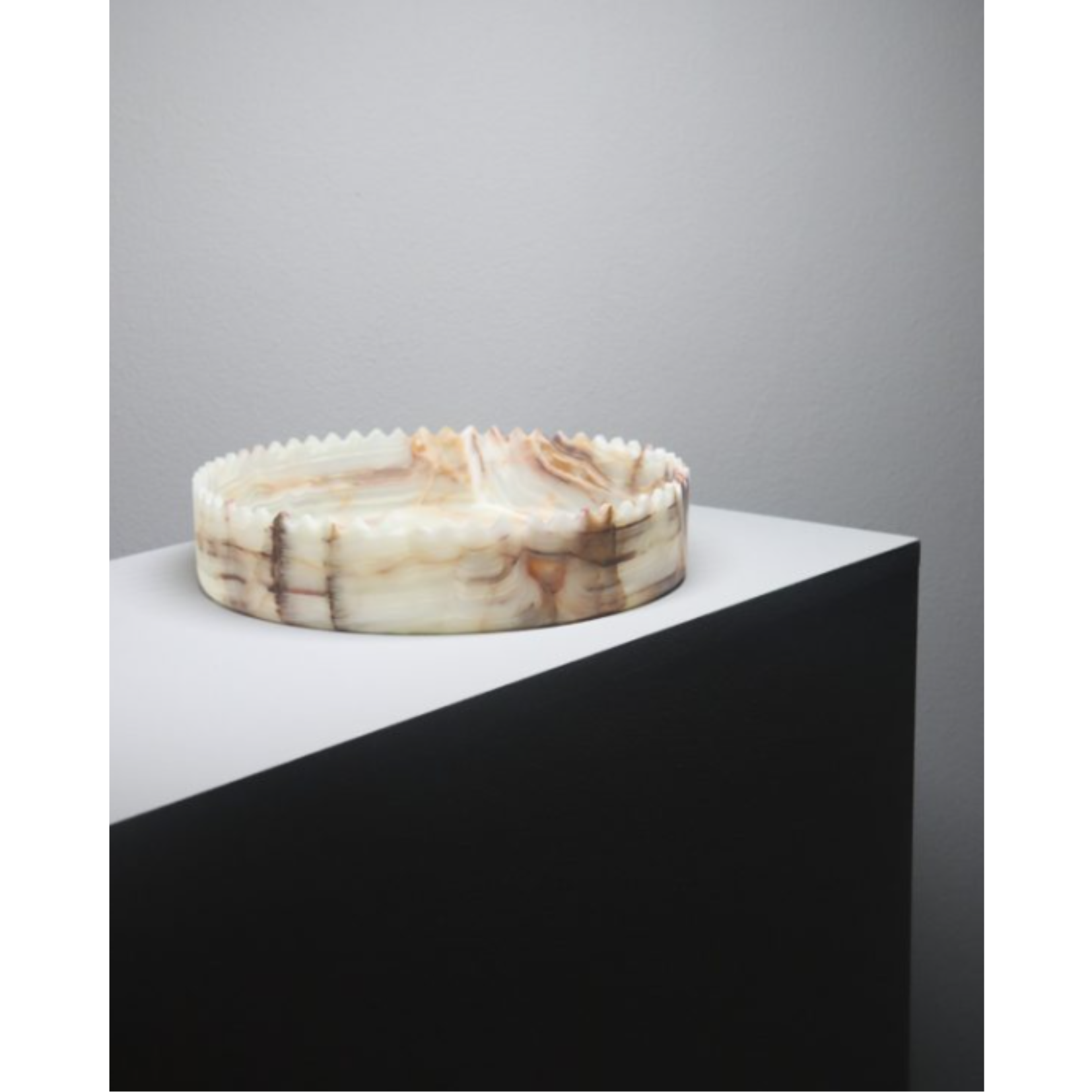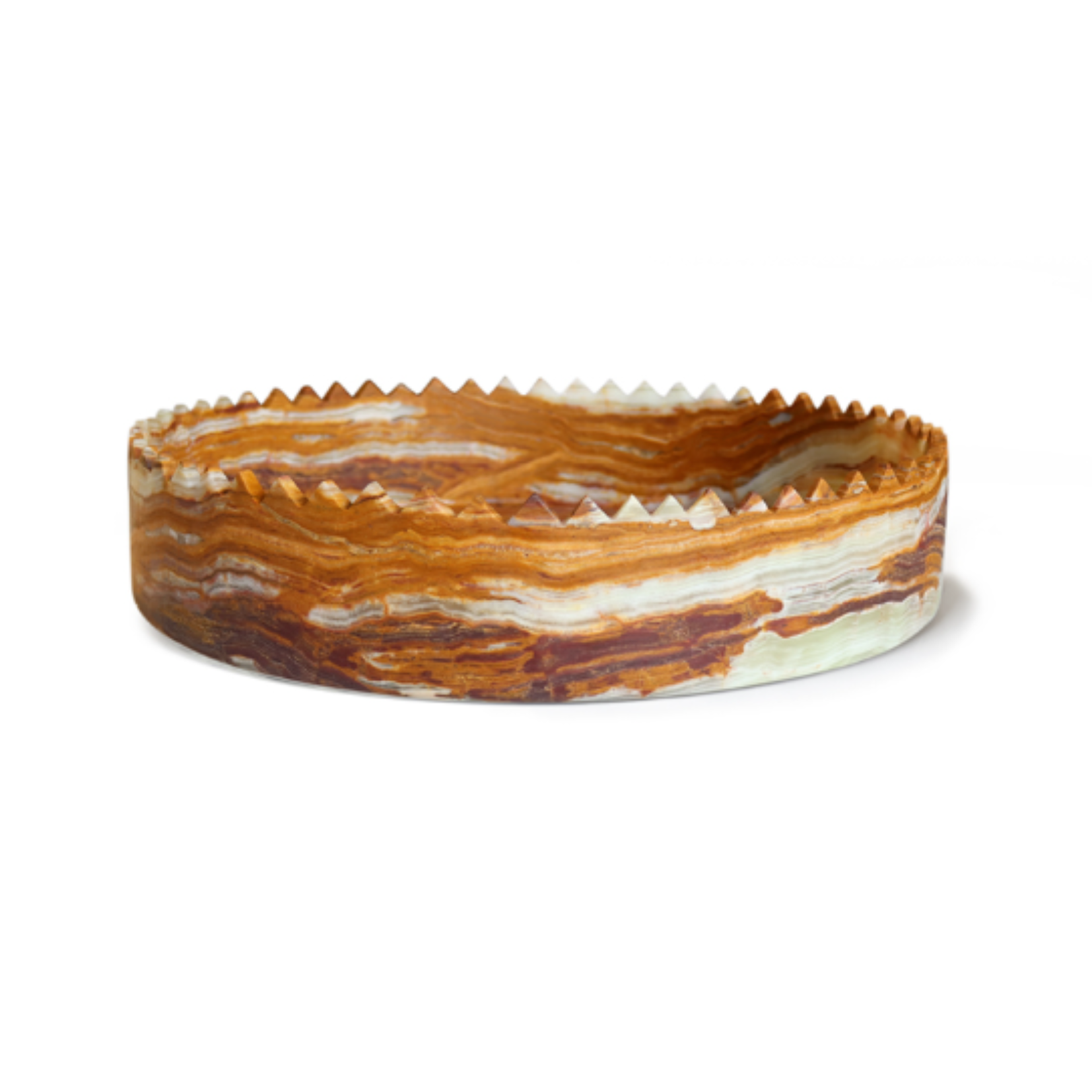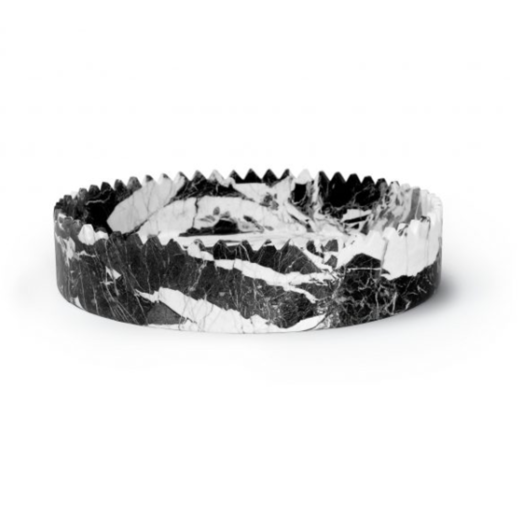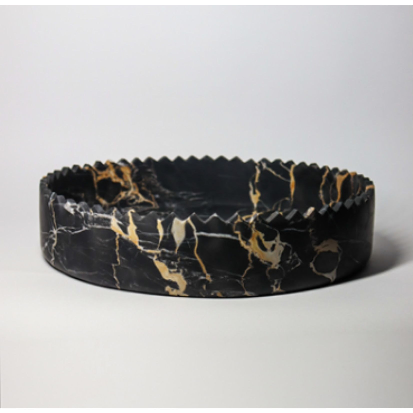 types of marbles and onyxes. According to the vision of its designers, David and Nicolas, a vase can elevate the beauty of a table or a space, thus each piece is imagined like a crown, making it both fragile and majestic, serious and playful. The edges, shaped like small, pointed triangles, are crafted by hand, one by one. Each element can be a stunningly versatile decorative piece, enhancing the beauty of its surroundings, while also offering exceptional functionality. Whether displayed alone or paired with other pieces from the same collection, each vase brings a touch of contemporary style and distinctiveness to any classic or modern setting. Upon request, each piece in the collection can be tailored in terms of materials and size.