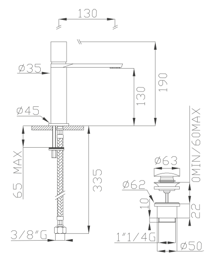 Basin single lever mixer with click-clack waste.