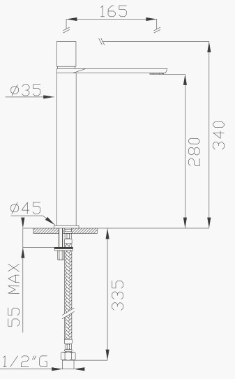 Tall basin single lever mixer.